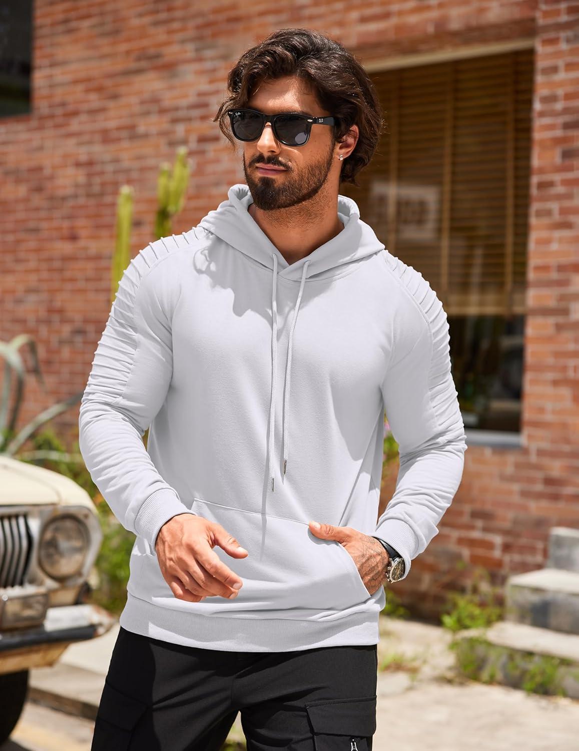COOFANDY Mens Hoodie Sweatshirts Casual Drawstring Hoodies Fashion Hooded Collar Athletic Pullover with Pocket(White)