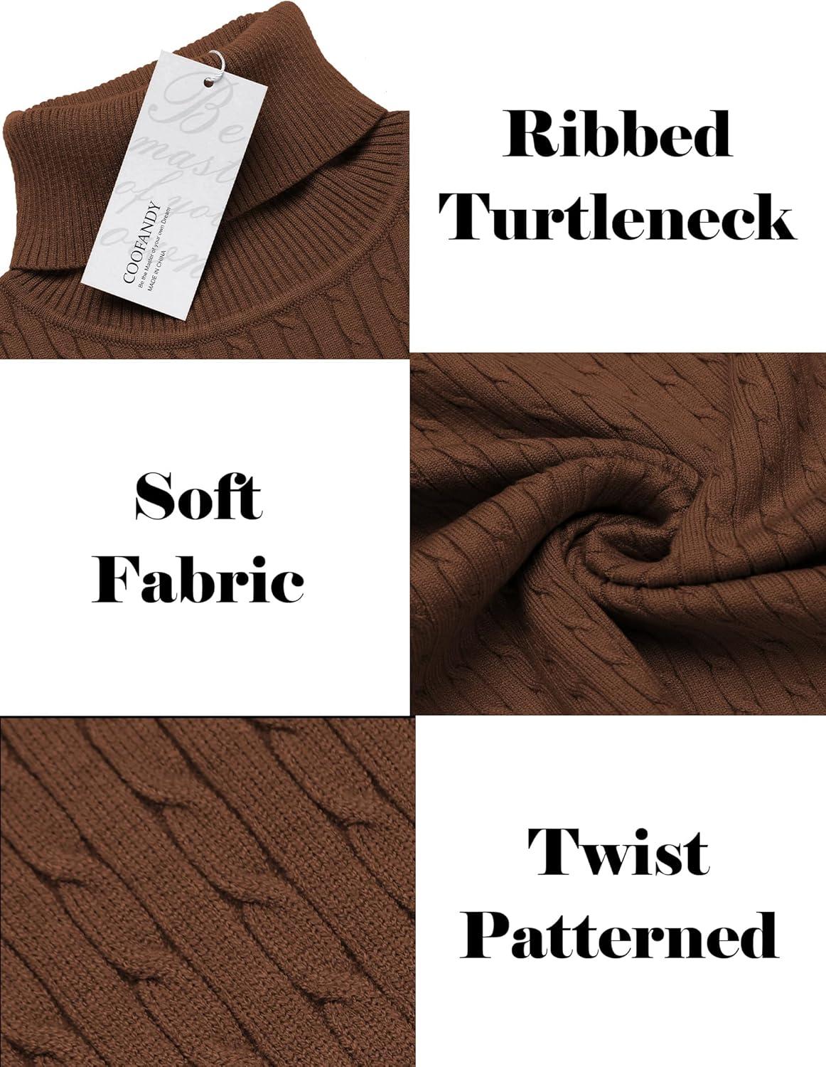 COOFANDY Men’s Slim Fit Turtleneck Sweater Casual Twist Patterned Pullover Knitted Sweaters(Brown)