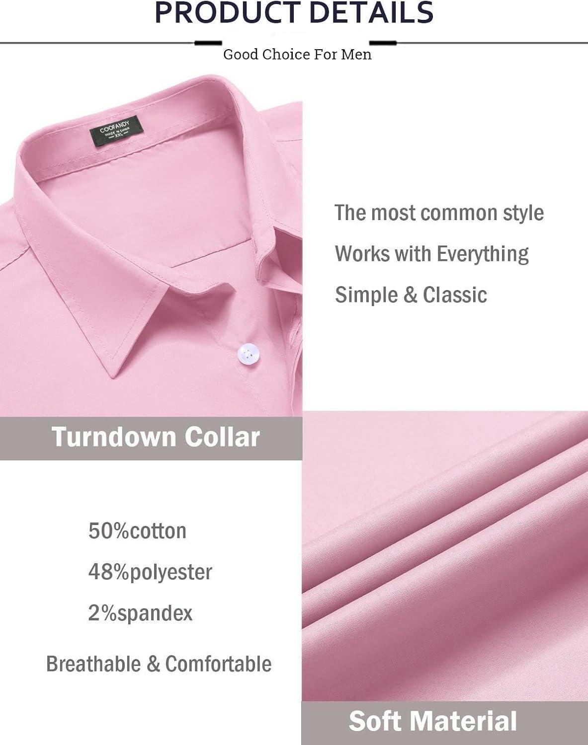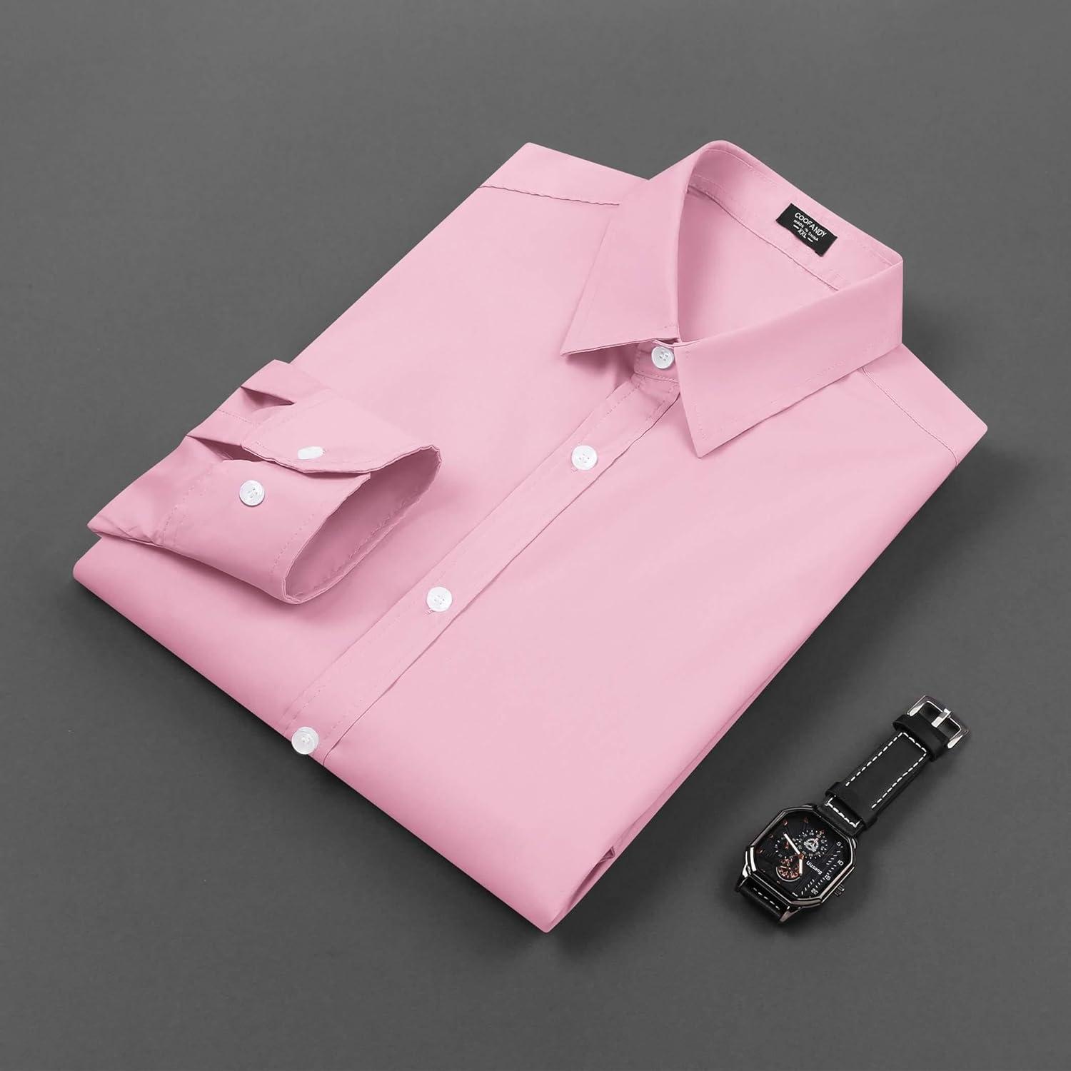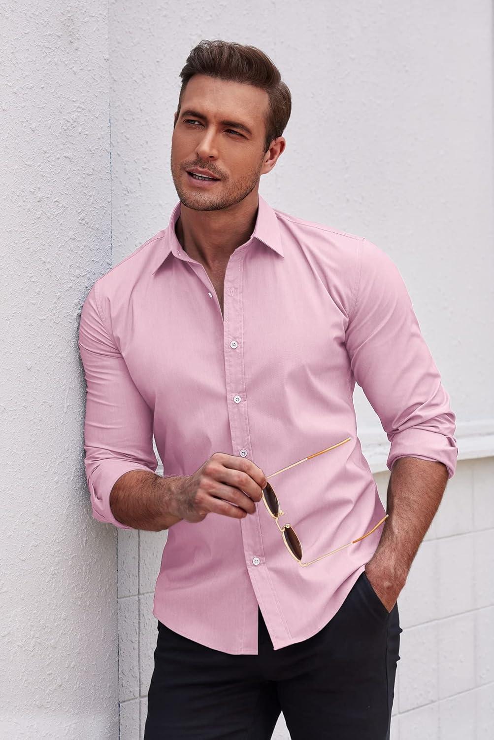 COOFANDY Mens Casual Button Down Shirts Long Sleeve Untucked Shirts for Men Stretch Dress Shirt(Light Pink)
