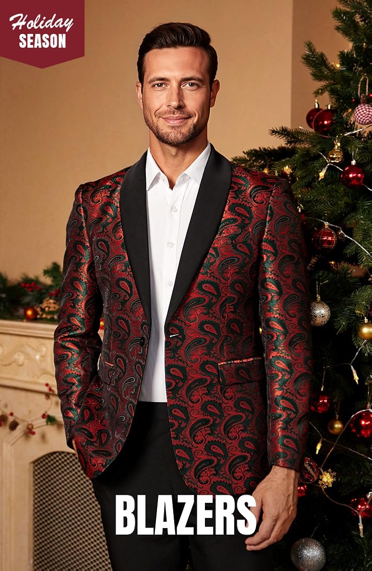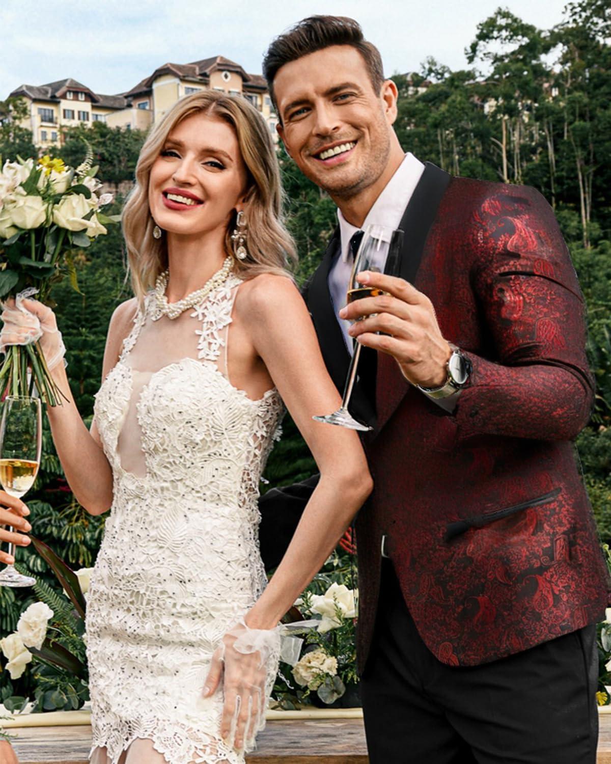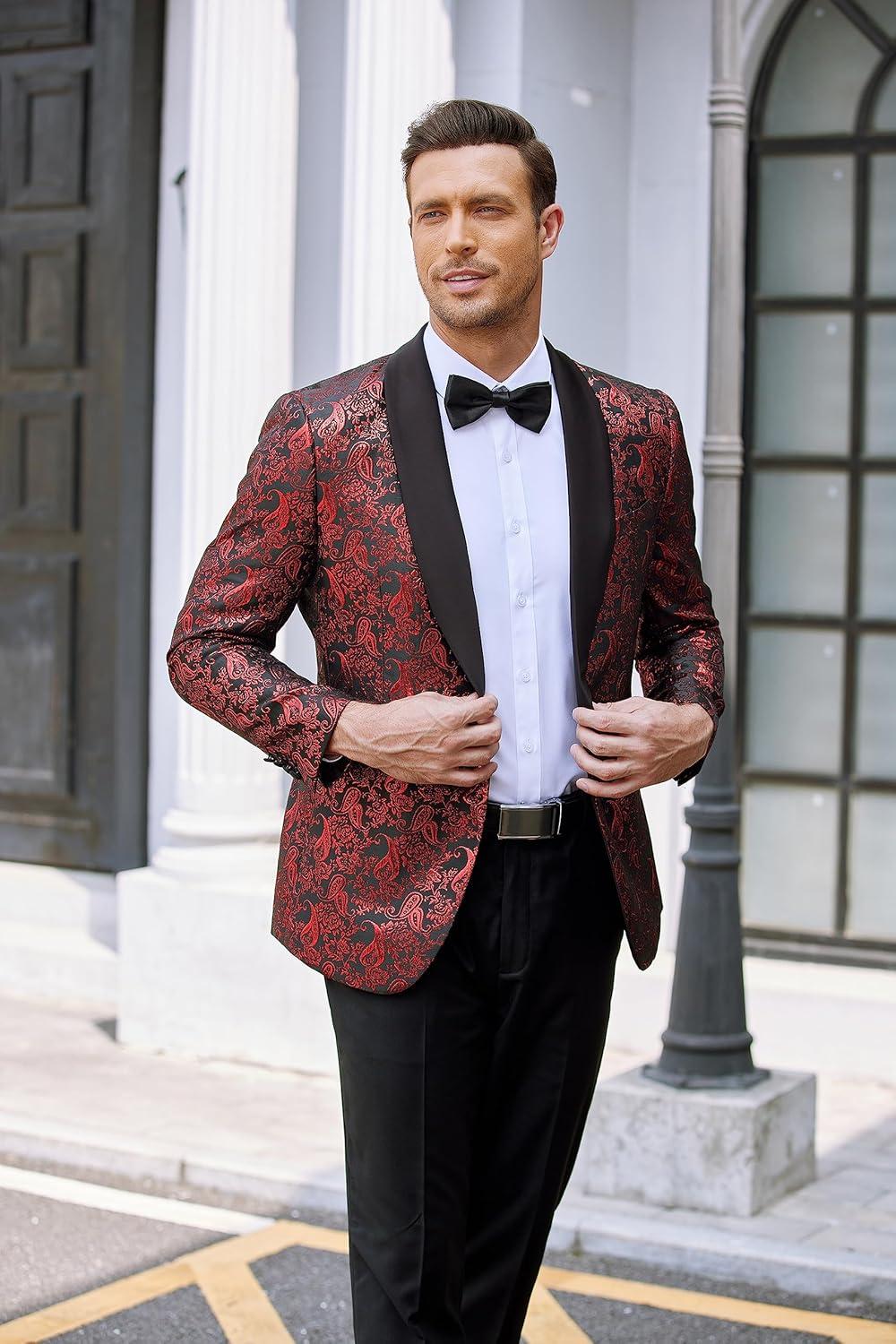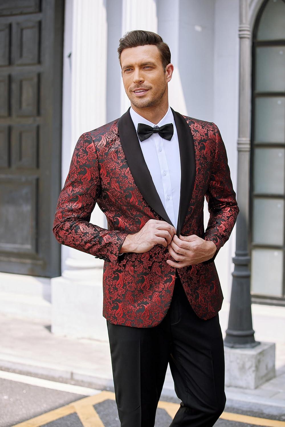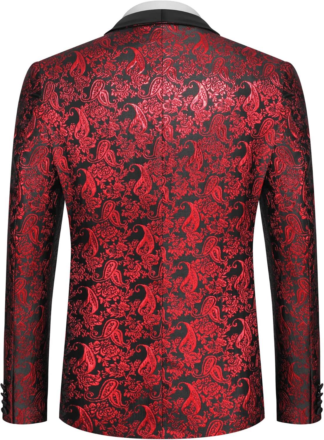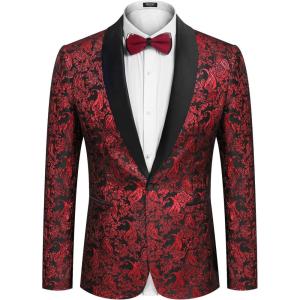 COOFANDY Men’s Floral Tuxedo Jacket Jacquard Suit Jacket Slim Fit Blazer for Wedding, Prom, Dinner(Type02-wine Red)