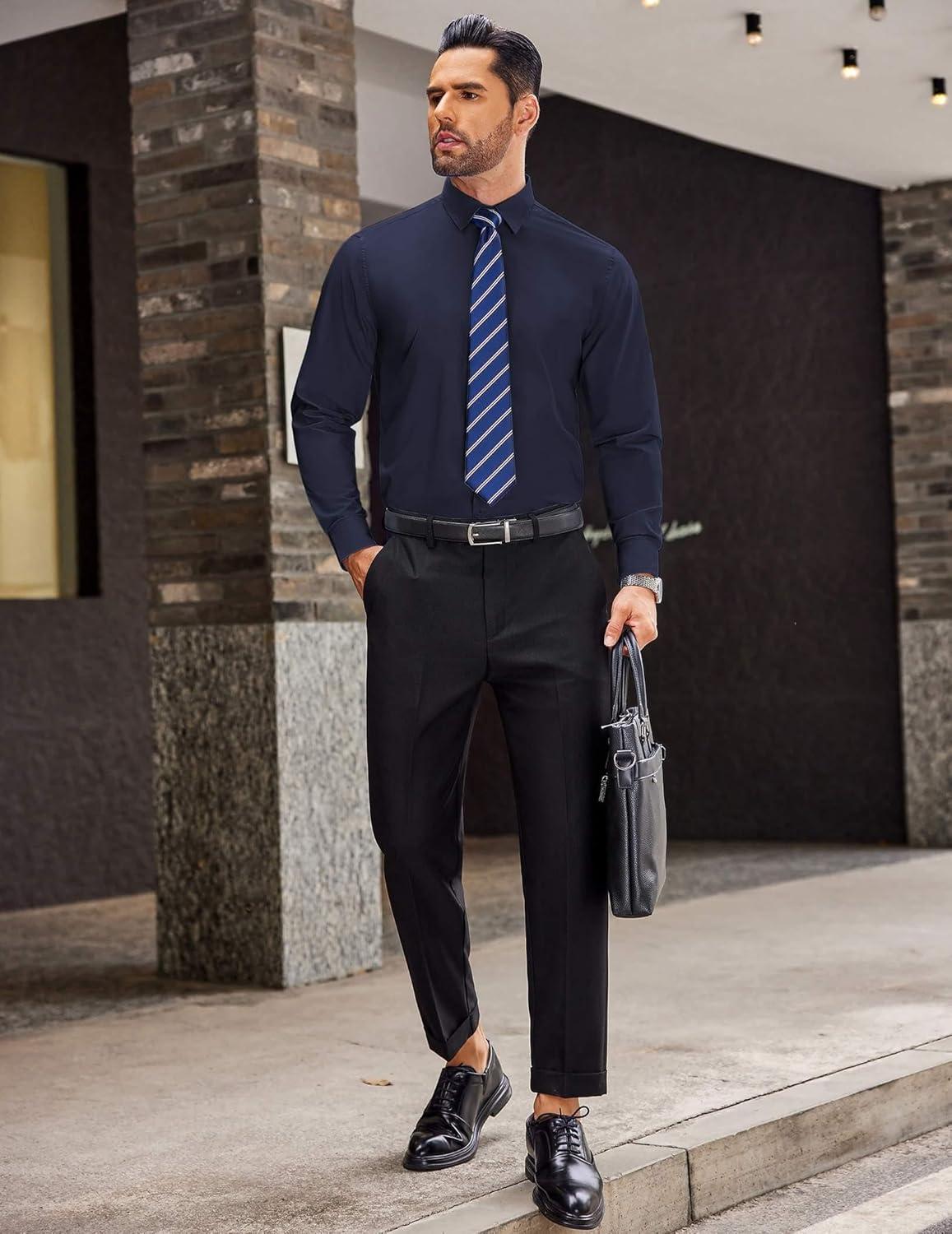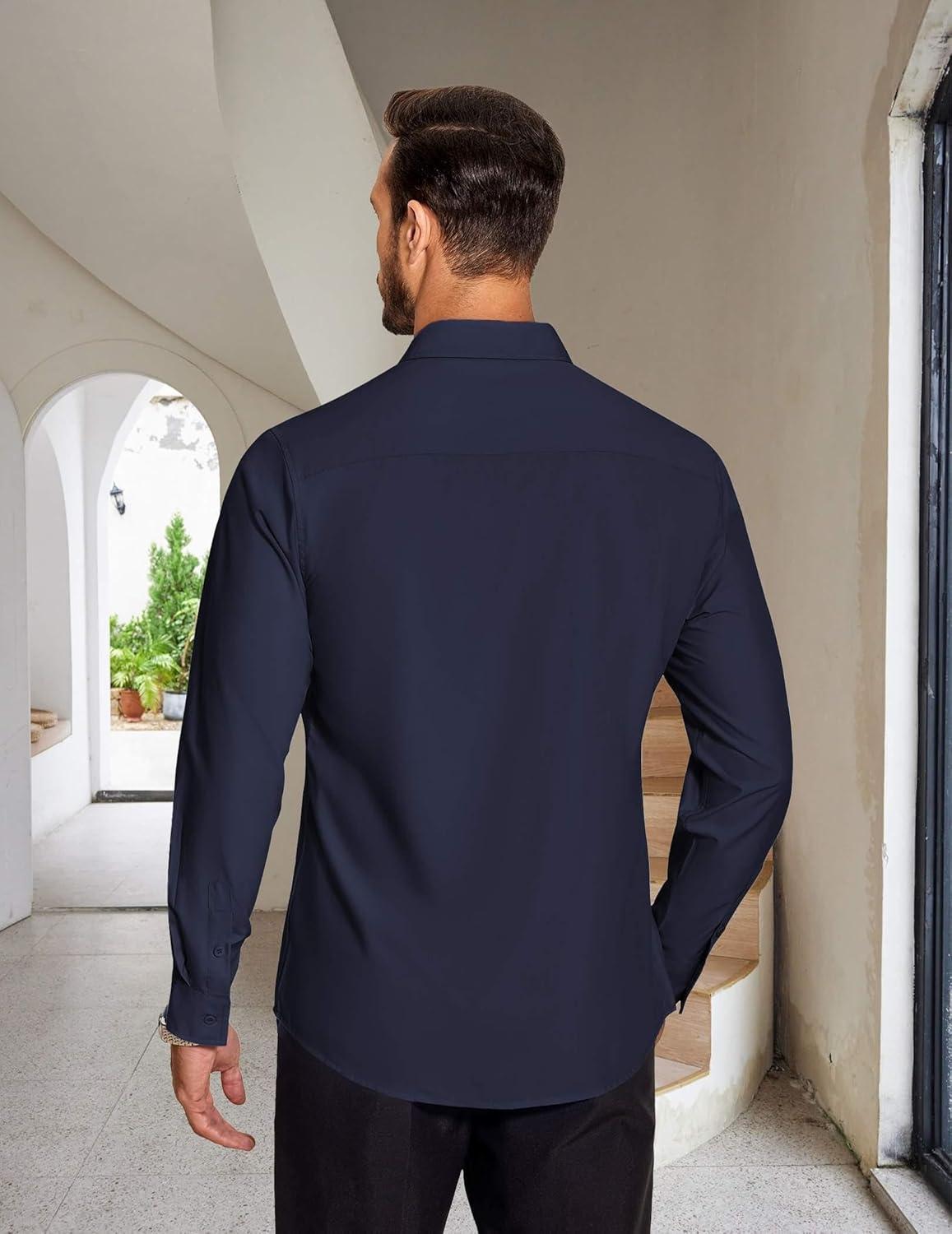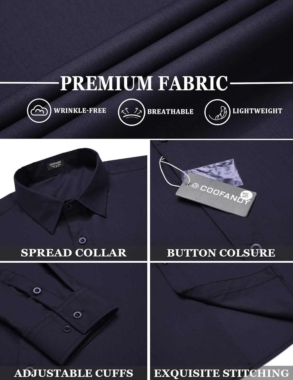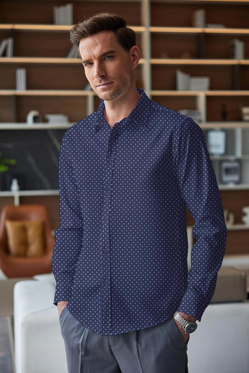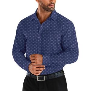 COOFANDY Men’s Business Dress Shirts Wrinkle Free Long Sleeve Regular Fit Dress Shirt Textured Casual Button Down Shirts(Navy Blue White Polka Dots)
