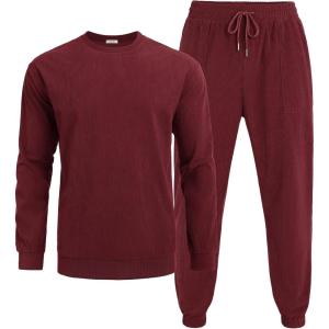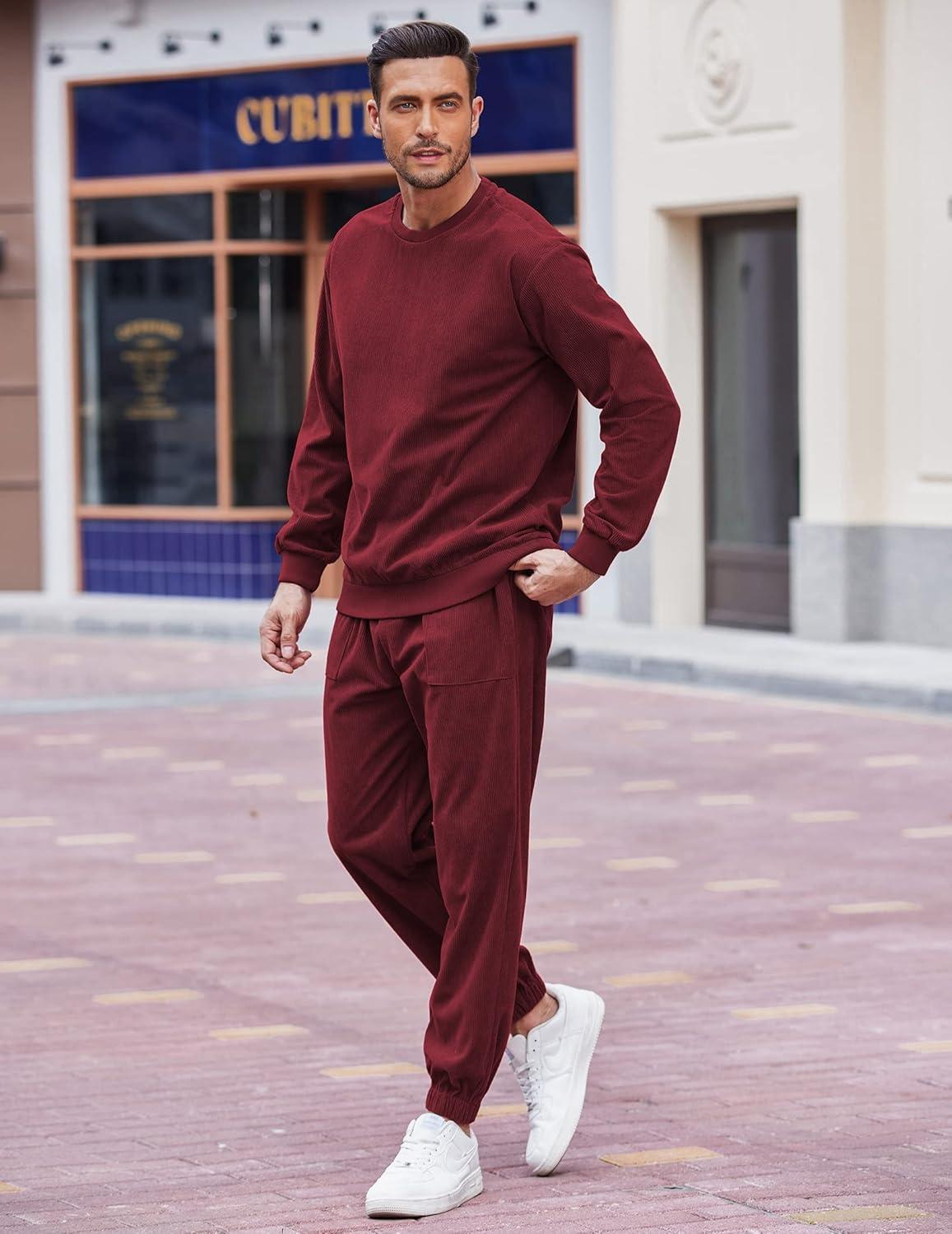 COOFANDY Men’s Tracksuit 2 Piece Sweatsuit Set Long Sleeve Pullover Athletic Suit For Sports Casual Fitness Jogging(Wine Red)