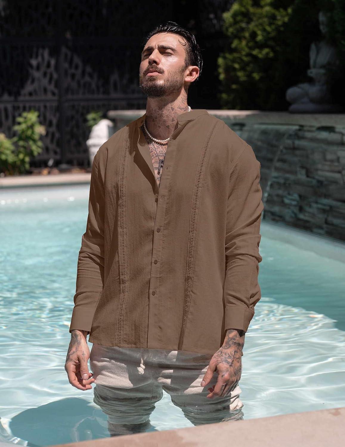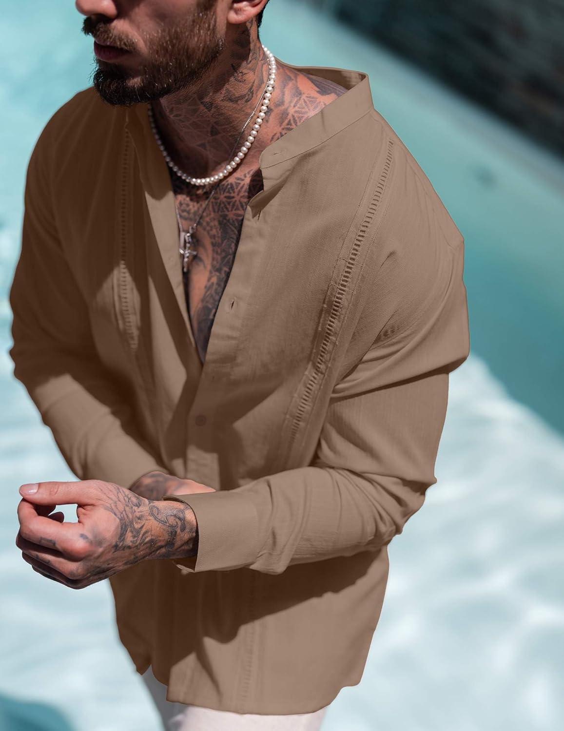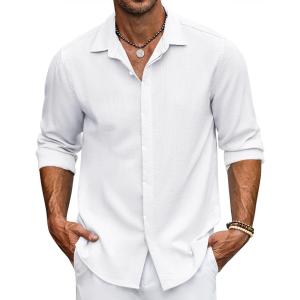 COOFANDY Men’s Casual Shirt Long Sleeve Casual Button Down Shirt for Men Summer Beach Wedding Shirt(A White)