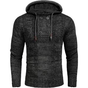 COOFANDY Men Knitted Hoodies Pullover Casual Long Sleeve Slim Fit Turtleneck Sweaters(Black)