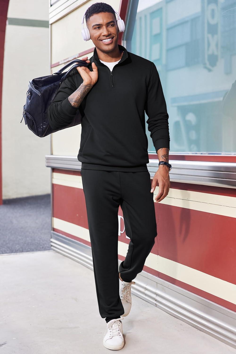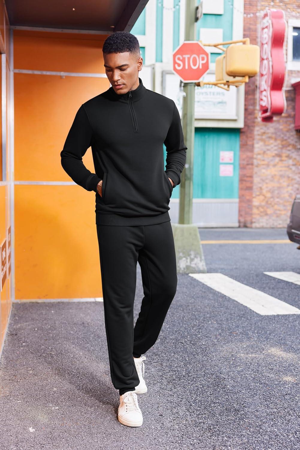 COOFANDY 2 Piece Set for Men Casual 1/4 Zip Track Suits Set Long Sleeve Quarter Pullover Jogging Suits 2025 Fashion Outfits(All Black)