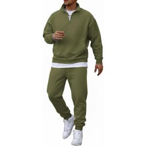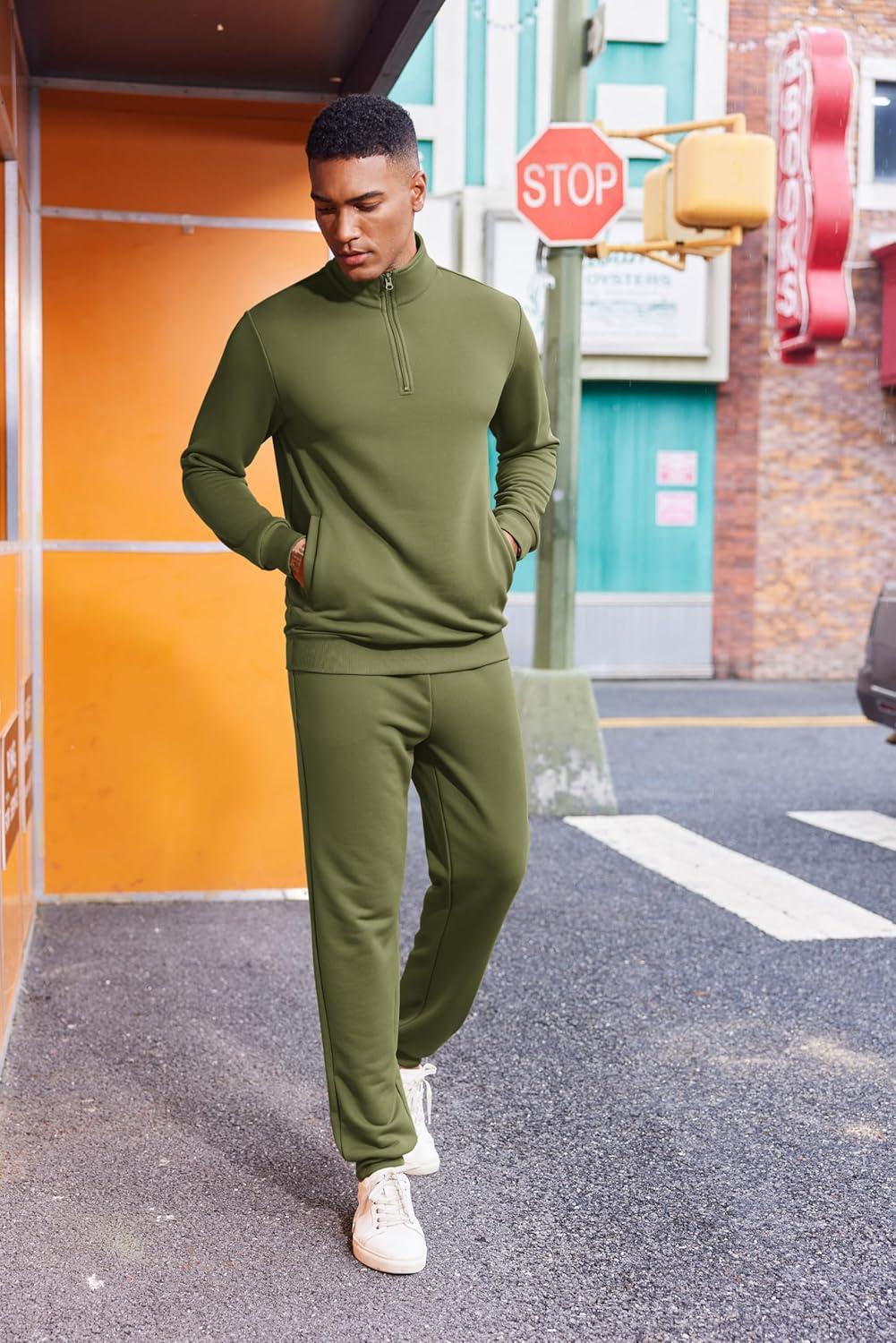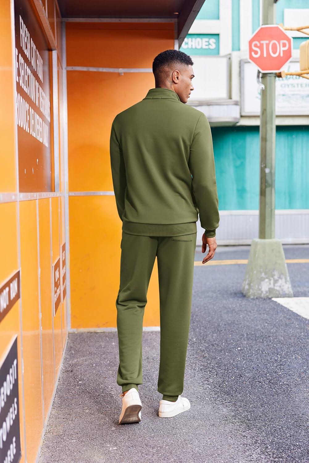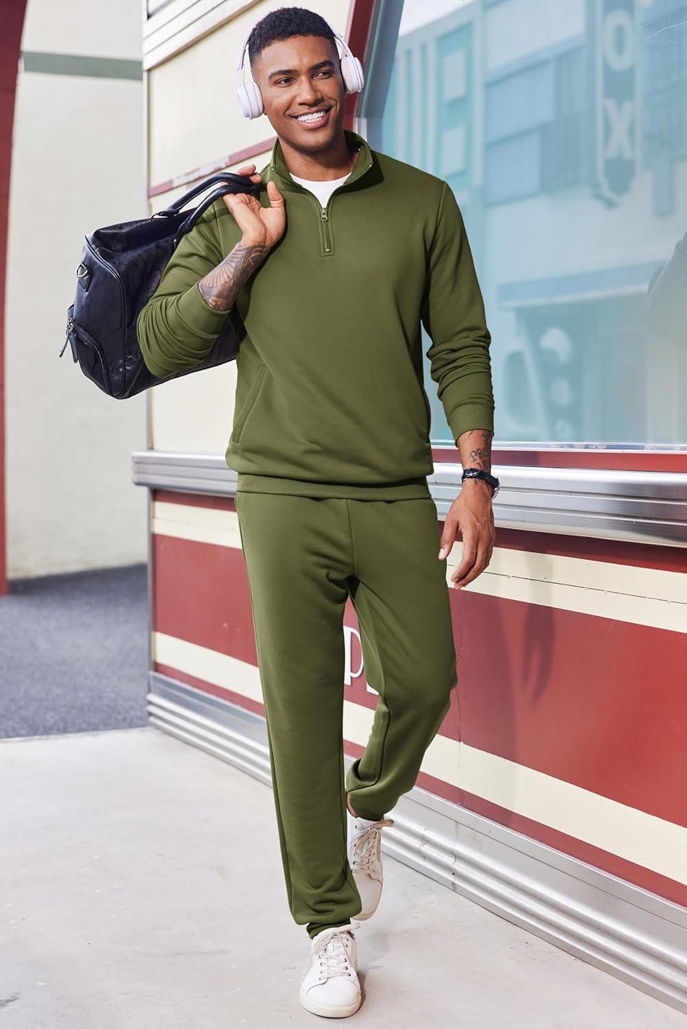 COOFANDY 2 Piece Set for Men Casual 1/4 Zip Track Suits Set Long Sleeve Quarter Pullover Jogging Suits 2025 Fashion Outfits(Army Green)