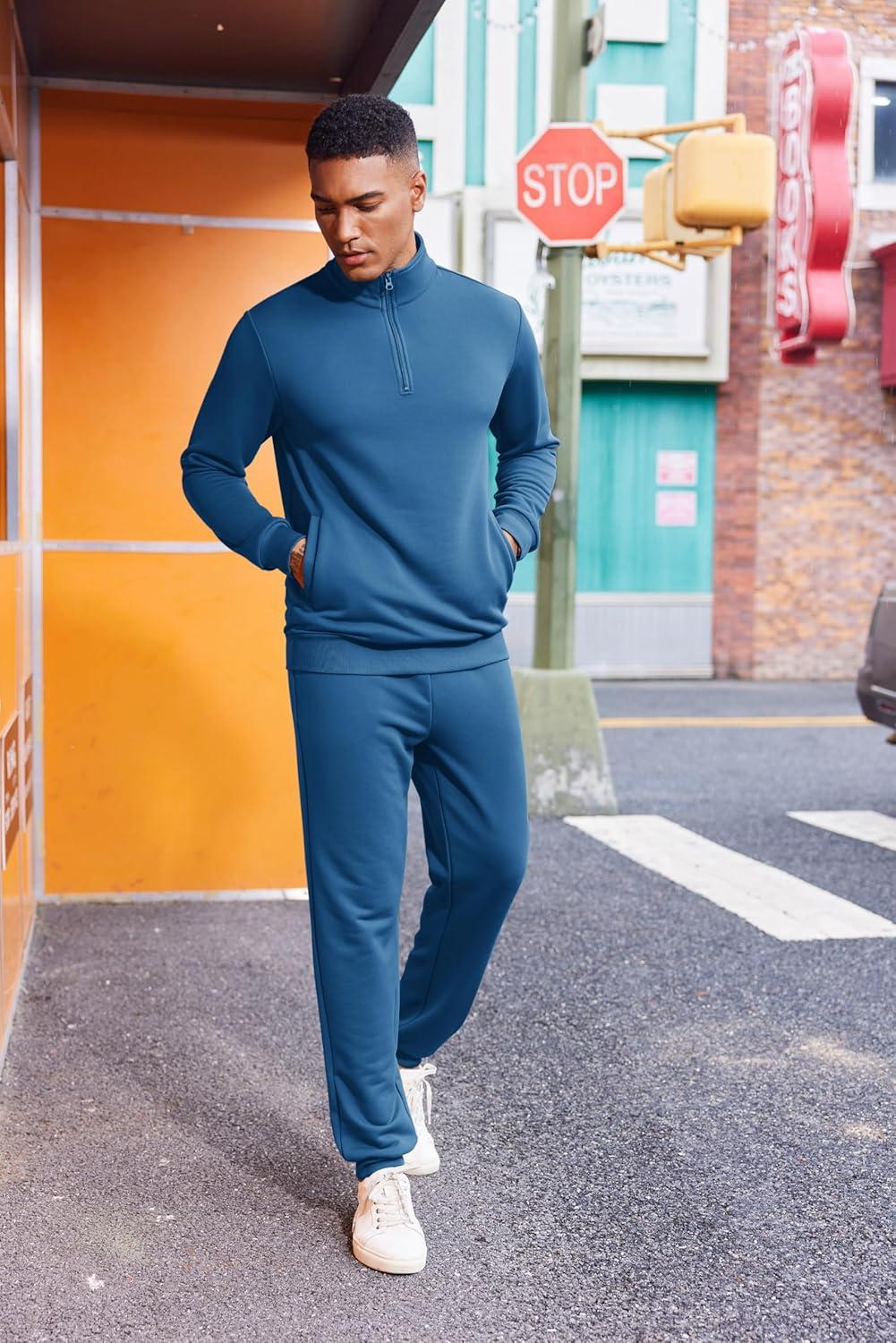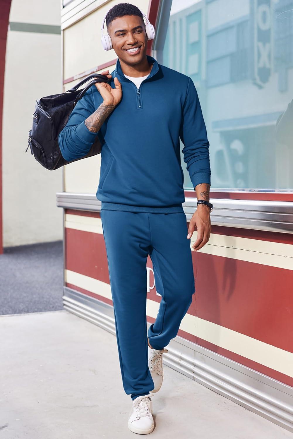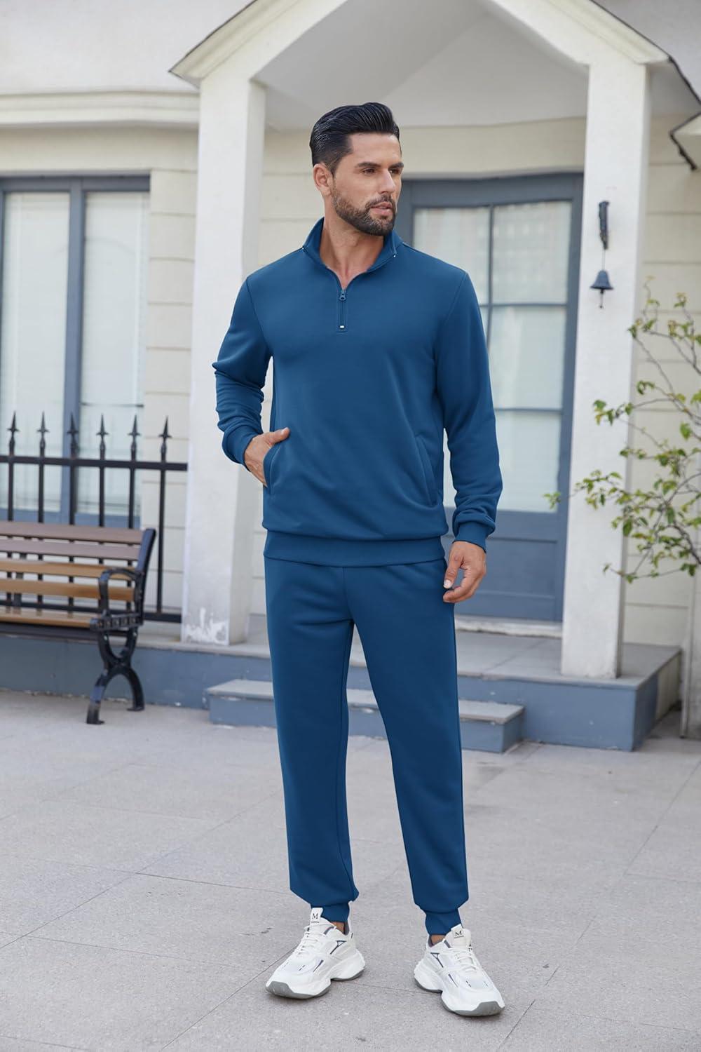 COOFANDY 2 Piece Set for Men Casual 1/4 Zip Track Suits Set Long Sleeve Quarter Pullover Jogging Suits 2025 Fashion Outfits(Blue)