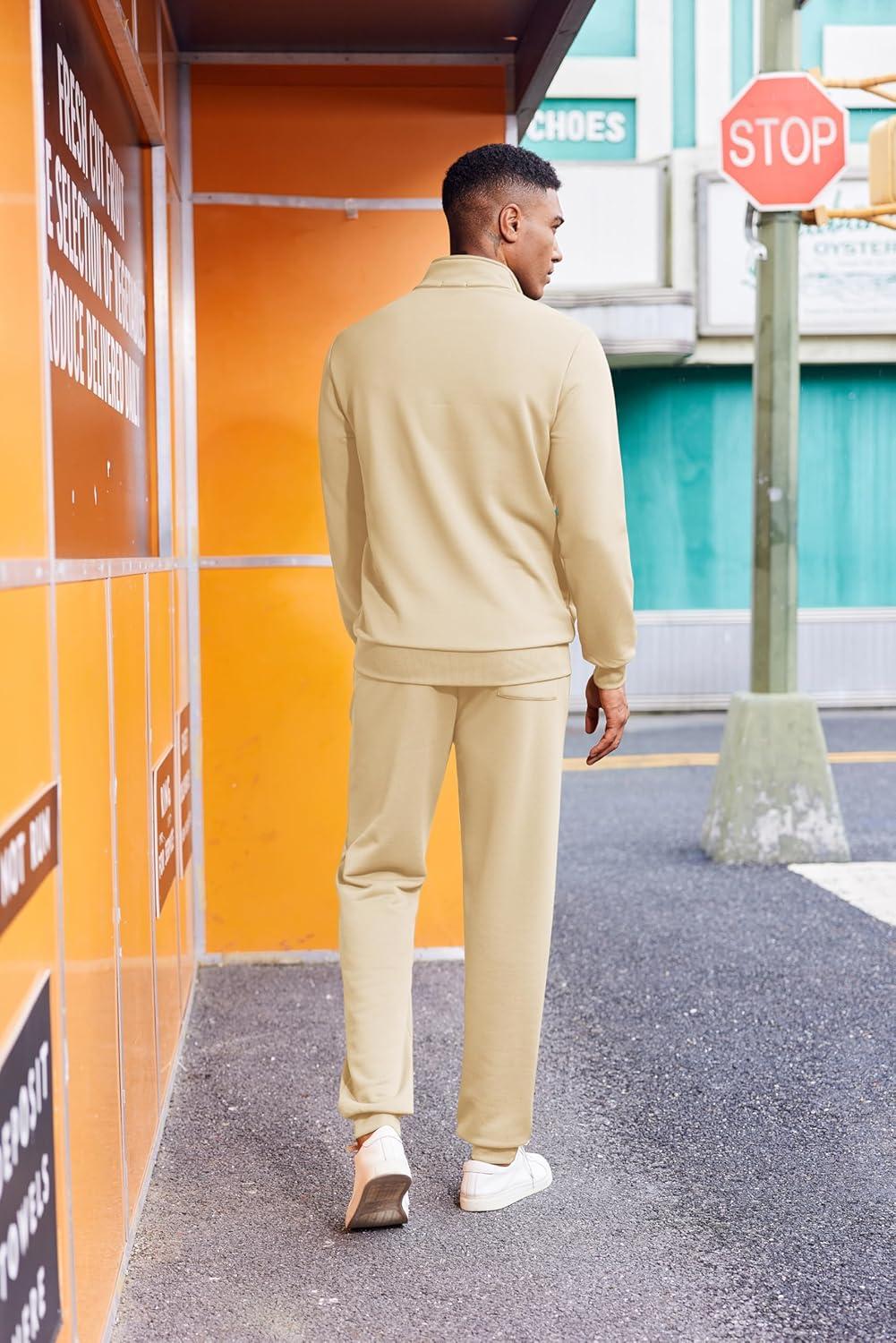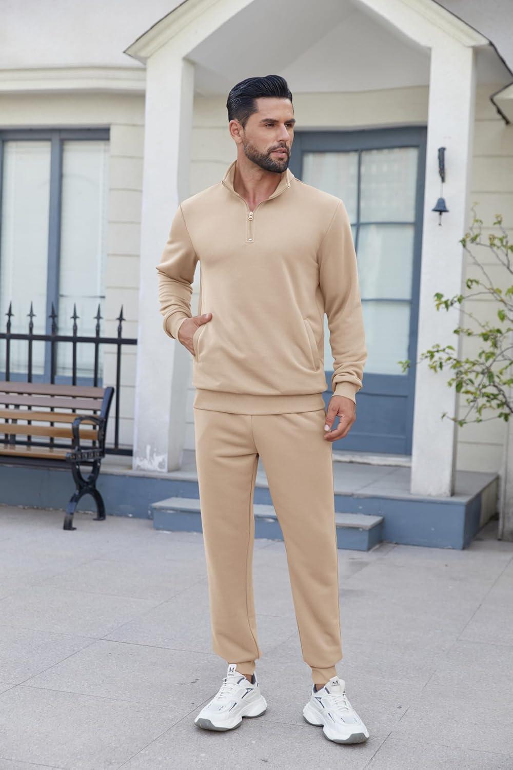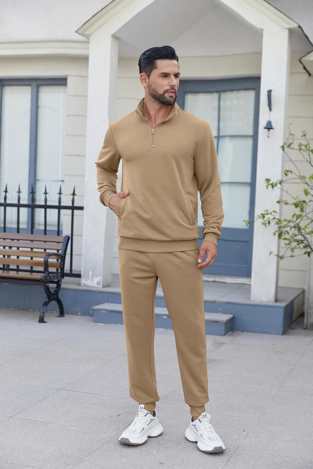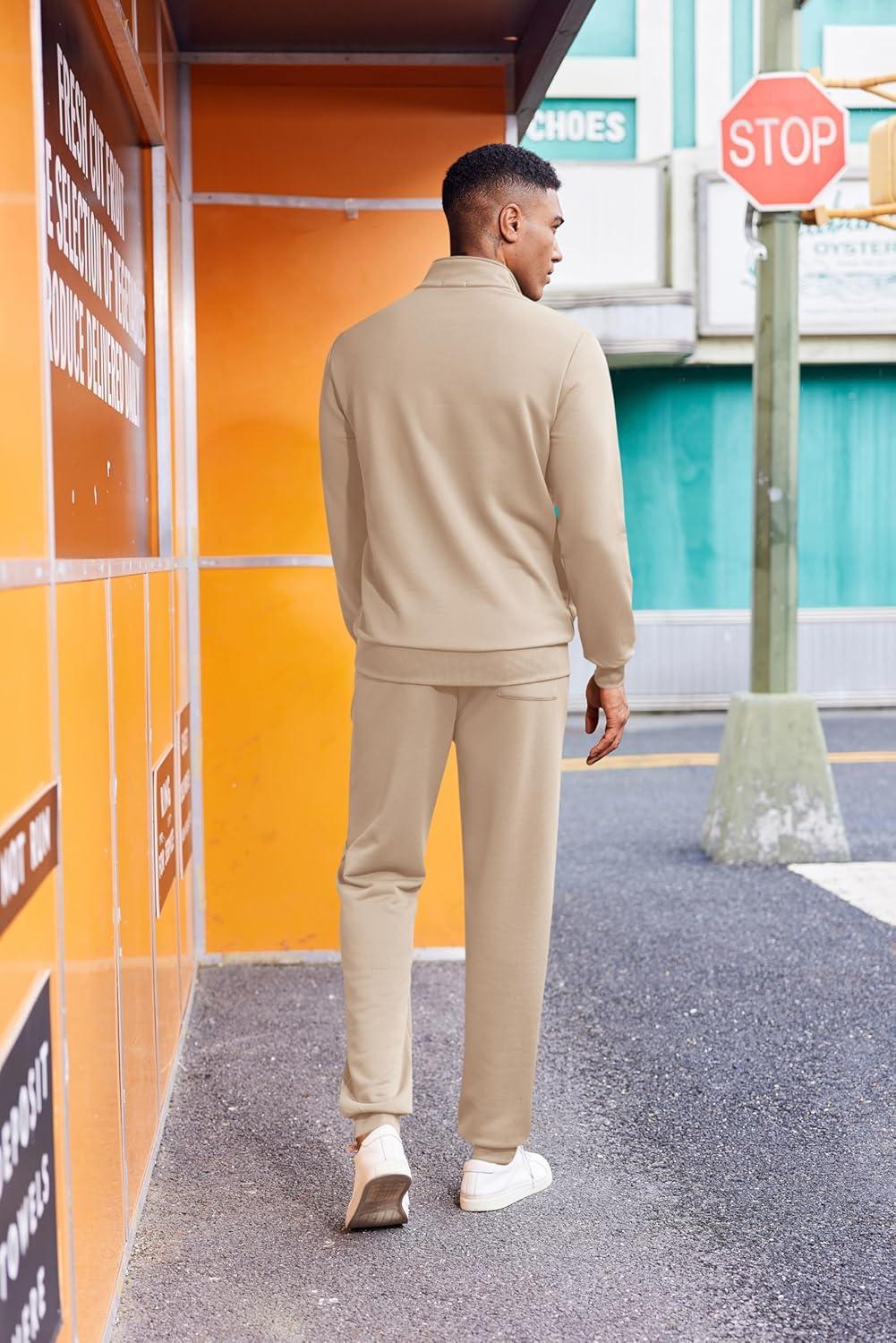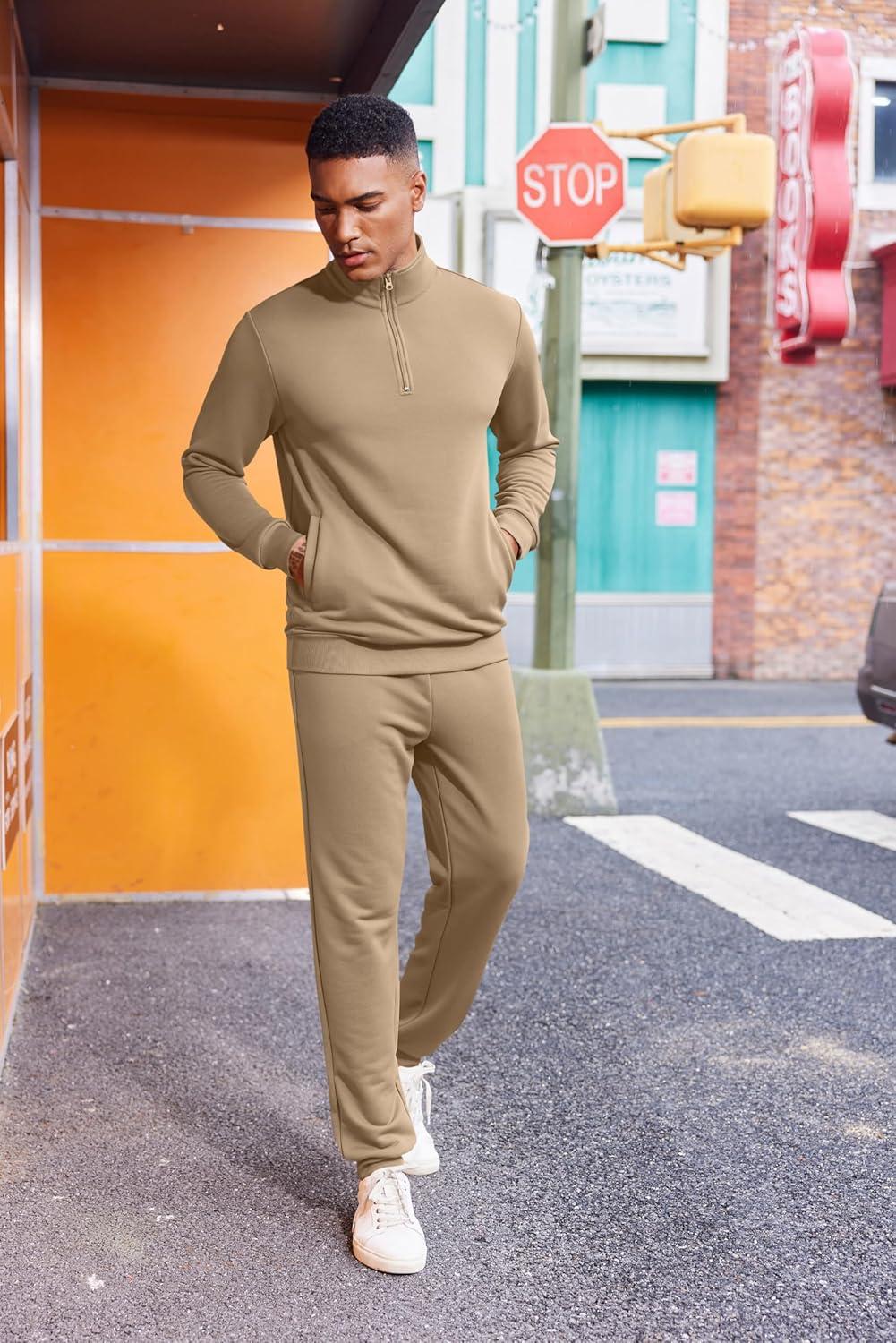 COOFANDY 2 Piece Set for Men Casual 1/4 Zip Track Suits Set Long Sleeve Quarter Pullover Jogging Suits 2025 Fashion Outfits(Light Khaki)