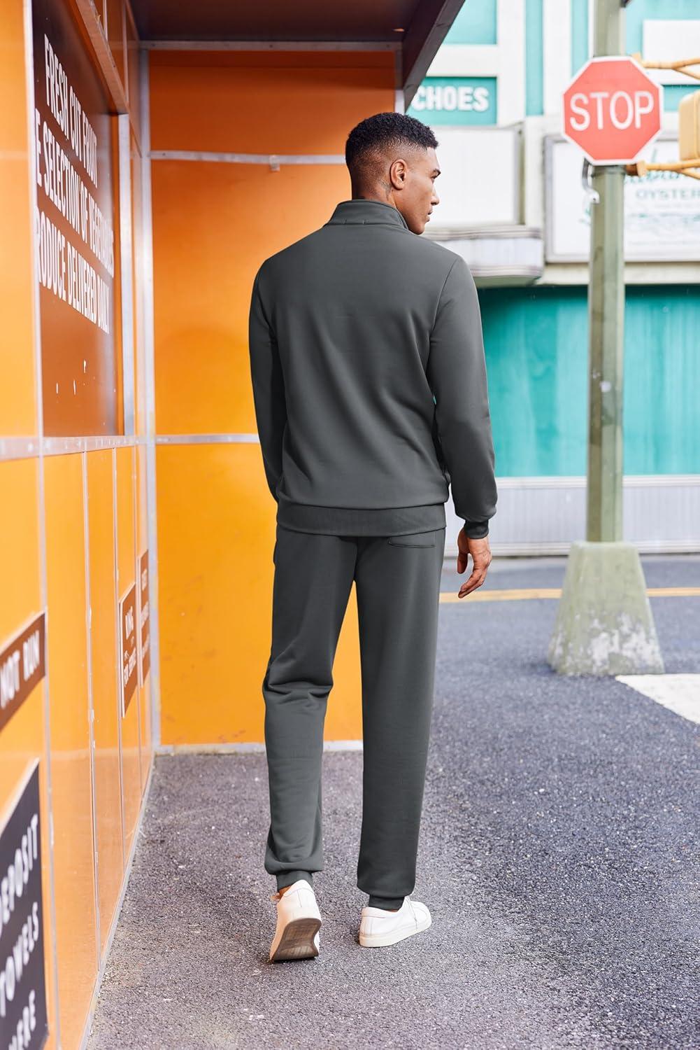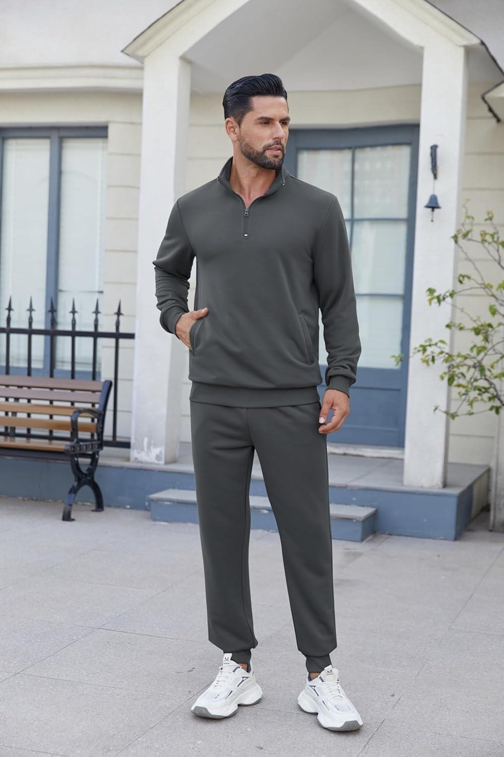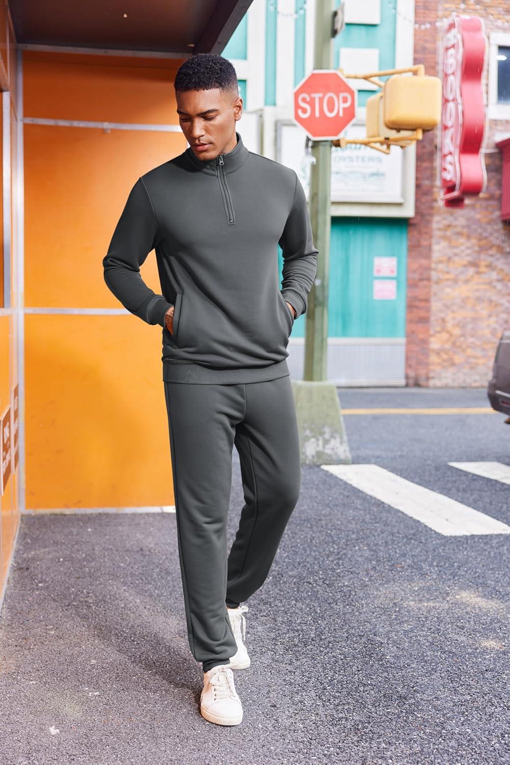 COOFANDY 2 Piece Set for Men Casual 1/4 Zip Track Suits Set Long Sleeve Quarter Pullover Jogging Suits 2025 Fashion Outfits(Dark Grey)