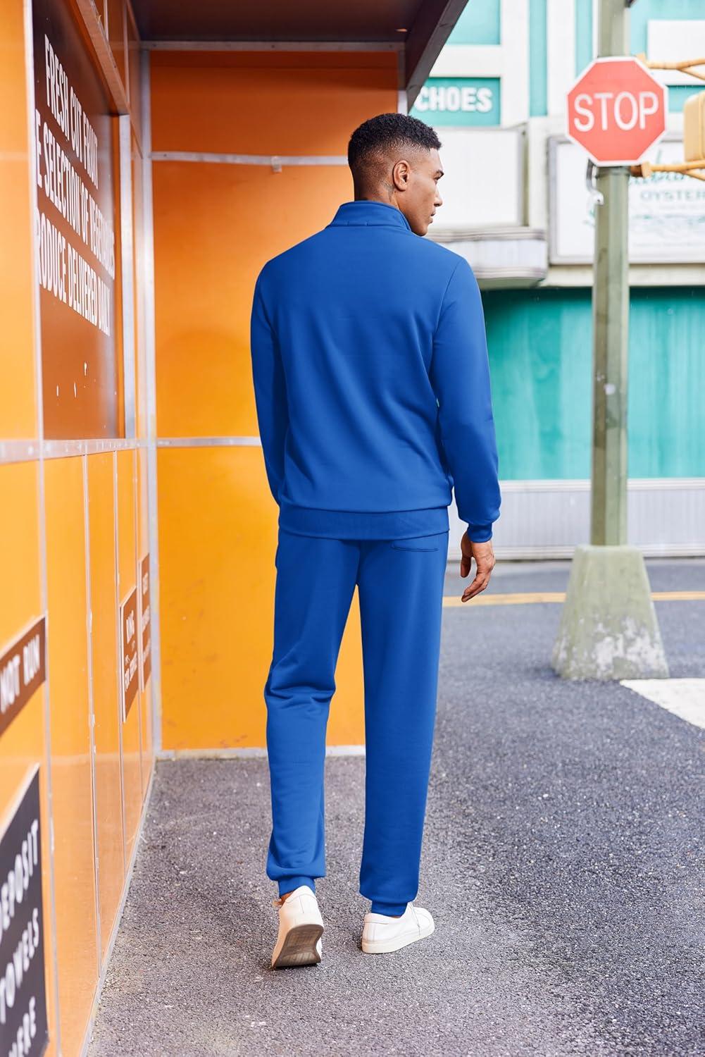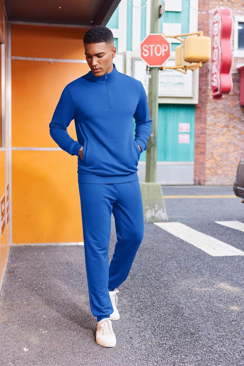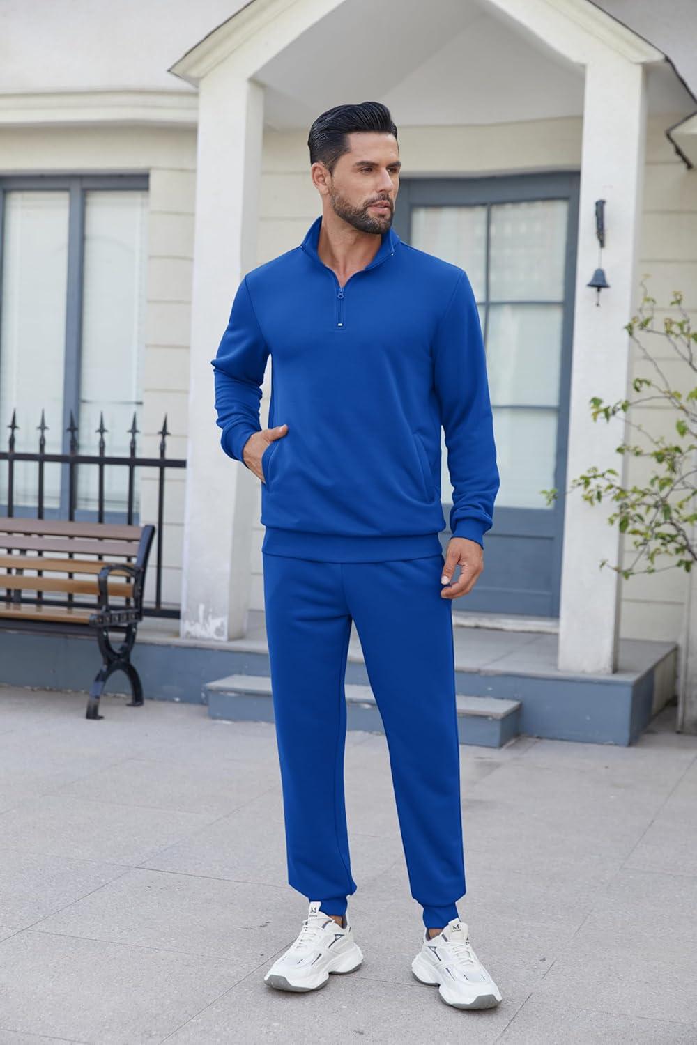 COOFANDY 2 Piece Set for Men Casual 1/4 Zip Track Suits Set Long Sleeve Quarter Pullover Jogging Suits 2025 Fashion Outfits(Royal Blue)