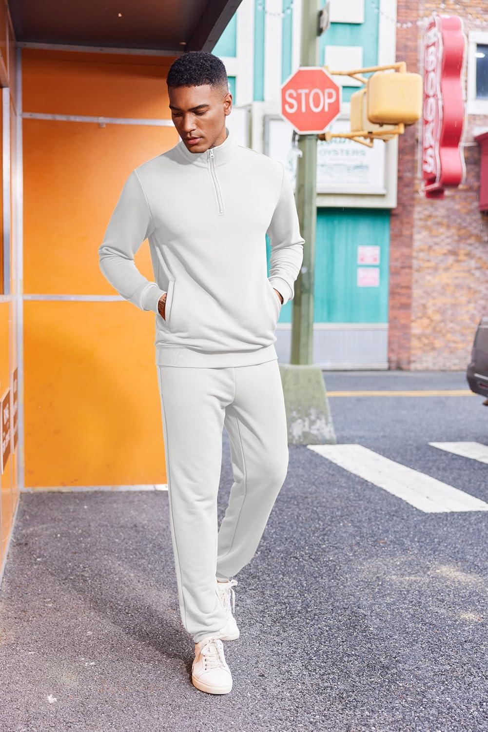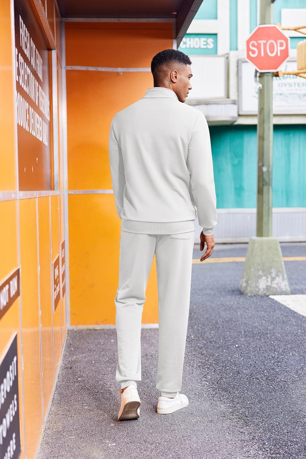 COOFANDY 2 Piece Set for Men Casual 1/4 Zip Track Suits Set Long Sleeve Quarter Pullover Jogging Suits 2025 Fashion Outfits(White)