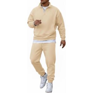 COOFANDY 2 Piece Set for Men Casual 1/4 Zip Track Suits Set Long Sleeve Quarter Pullover Jogging Suits 2025 Fashion Outfits(Cream)