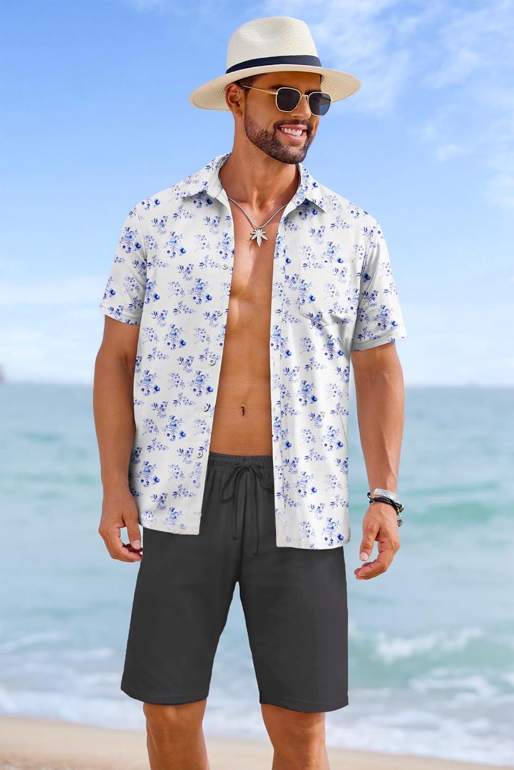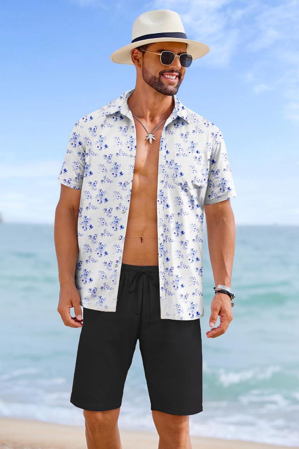 COOFANDY Mens Casual Shorts 9 inch Inseam Stretch Beach Shorts Elastic Waist Drawstring Summer Shorts(Black)