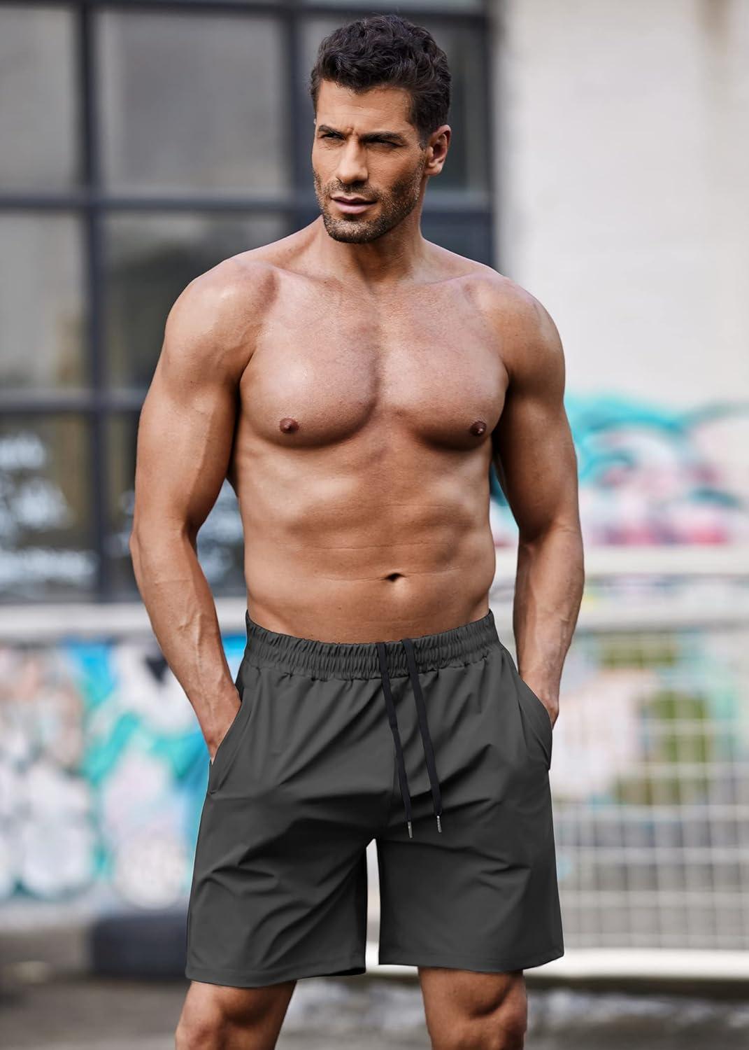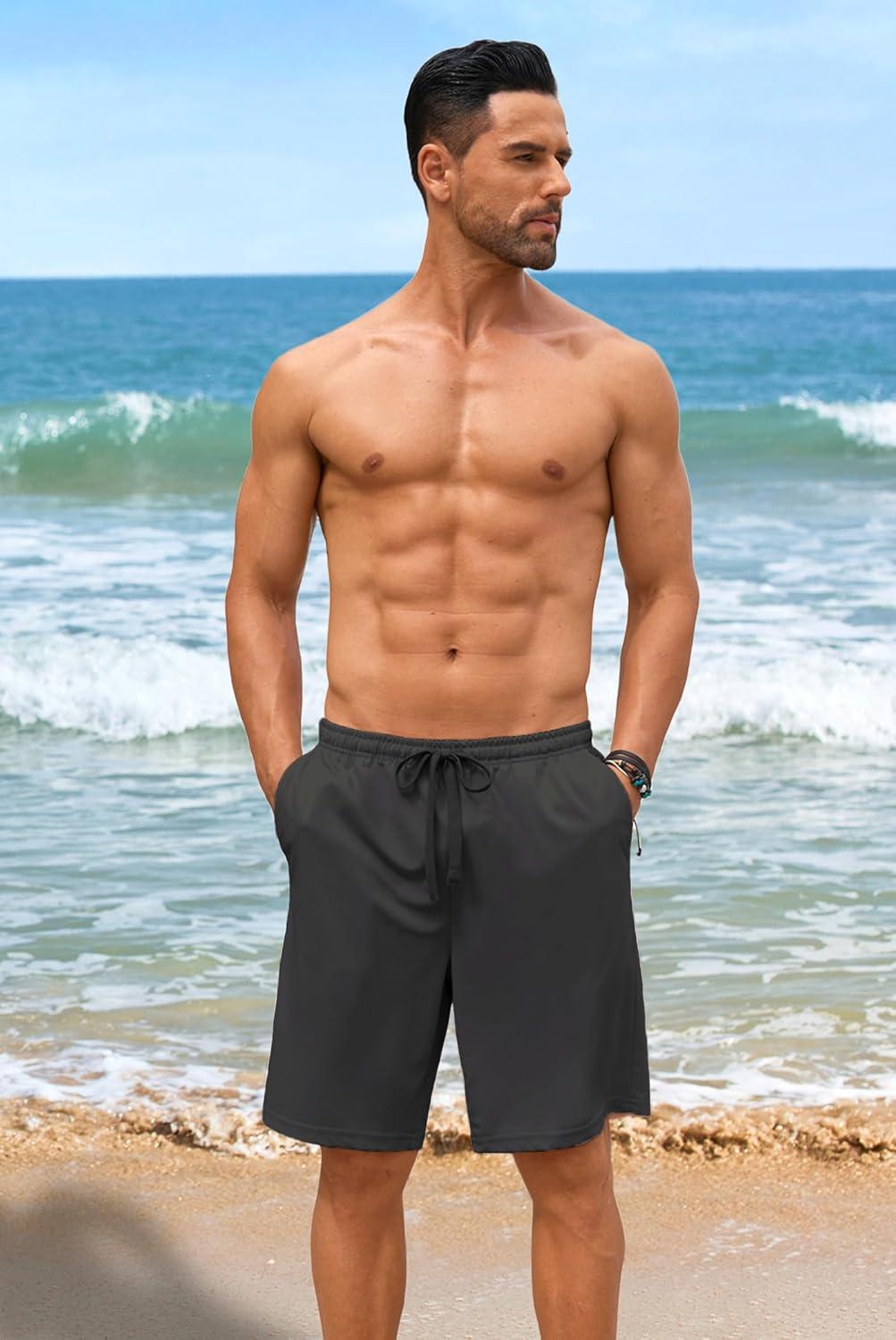 COOFANDY Mens Casual Shorts 9 inch Inseam Stretch Beach Shorts Elastic Waist Drawstring Summer Shorts(Dark Grey)