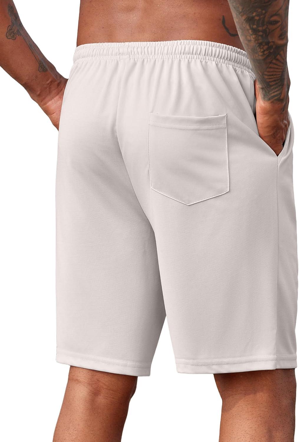 COOFANDY Mens Casual Shorts 9 inch Inseam Stretch Beach Shorts Elastic Waist Drawstring Summer Shorts(Light Grey)
