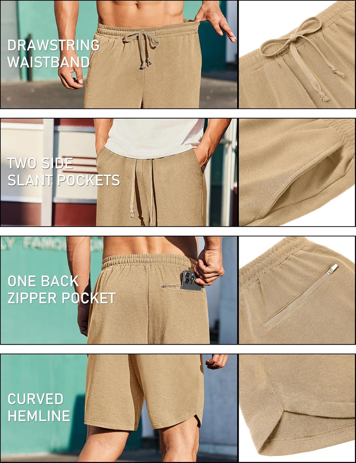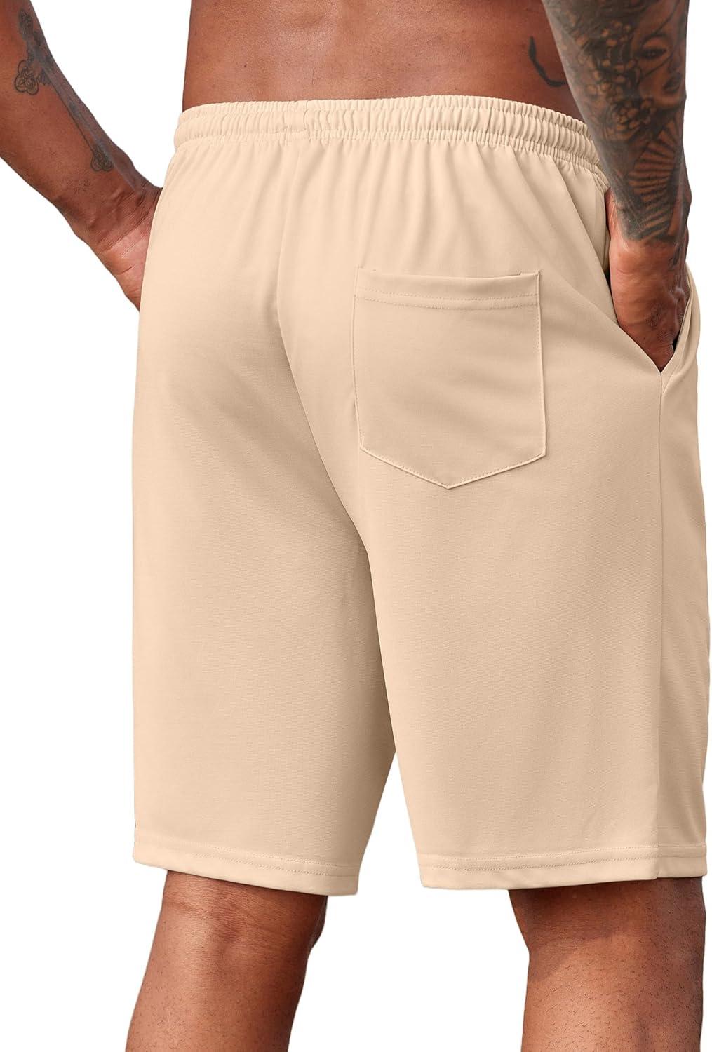 COOFANDY Mens Casual Shorts 9 inch Inseam Stretch Beach Shorts Elastic Waist Drawstring Summer Shorts(Light Khaki)