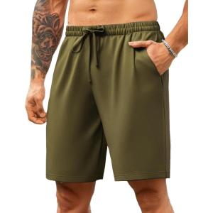 COOFANDY Mens Casual Shorts 9 inch Inseam Stretch Beach Shorts Elastic Waist Drawstring Summer Shorts(Army Green)