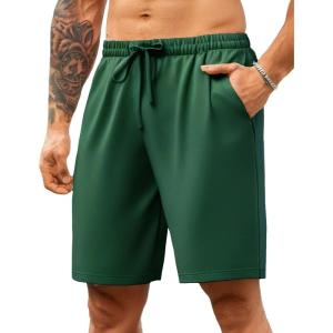 COOFANDY Mens Casual Shorts 9 inch Inseam Stretch Beach Shorts Elastic Waist Drawstring Summer Shorts(Green)