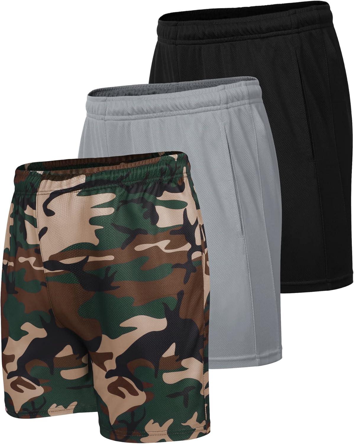 COOFANDY Men’s 3 Pack Workout Gym Shorts Mesh Athletic Shorts Lightweight Bodybuilding Training Short Pants with Pockets(Camo / Khaki / Navy Blue)