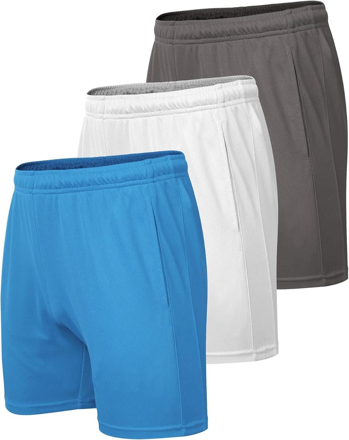 COOFANDY Men’s 3 Pack Workout Gym Shorts Mesh Athletic Shorts Lightweight Bodybuilding Training Short Pants with Pockets(Light Blue/White/Dark Grey)