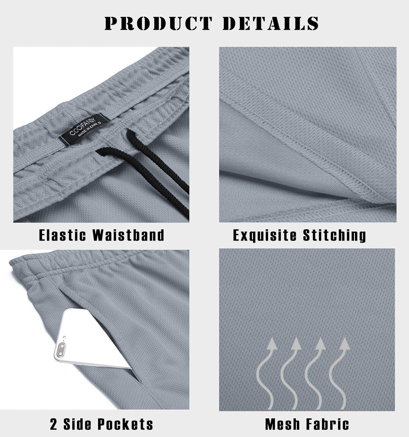 COOFANDY Men’s Athletic Running Shorts 7″ Quick Dry Lightweight Workout Gym Basketball Hiking Shorts with Pockets(Light Grey)