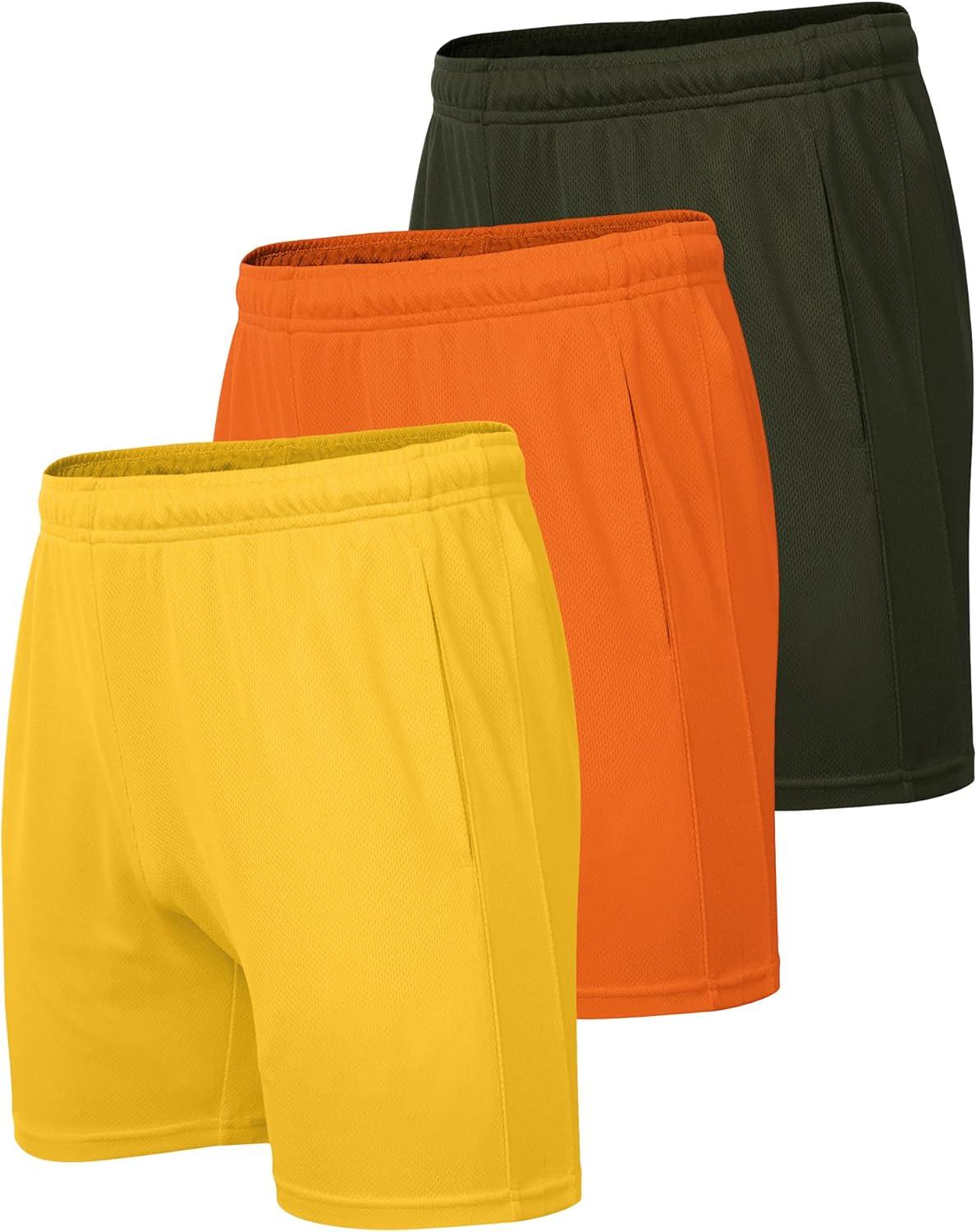 COOFANDY Men’s 3 Pack Workout Gym Shorts Mesh Athletic Shorts Lightweight Bodybuilding Training Short Pants with Pockets(Yellow/Orange/Army Green)