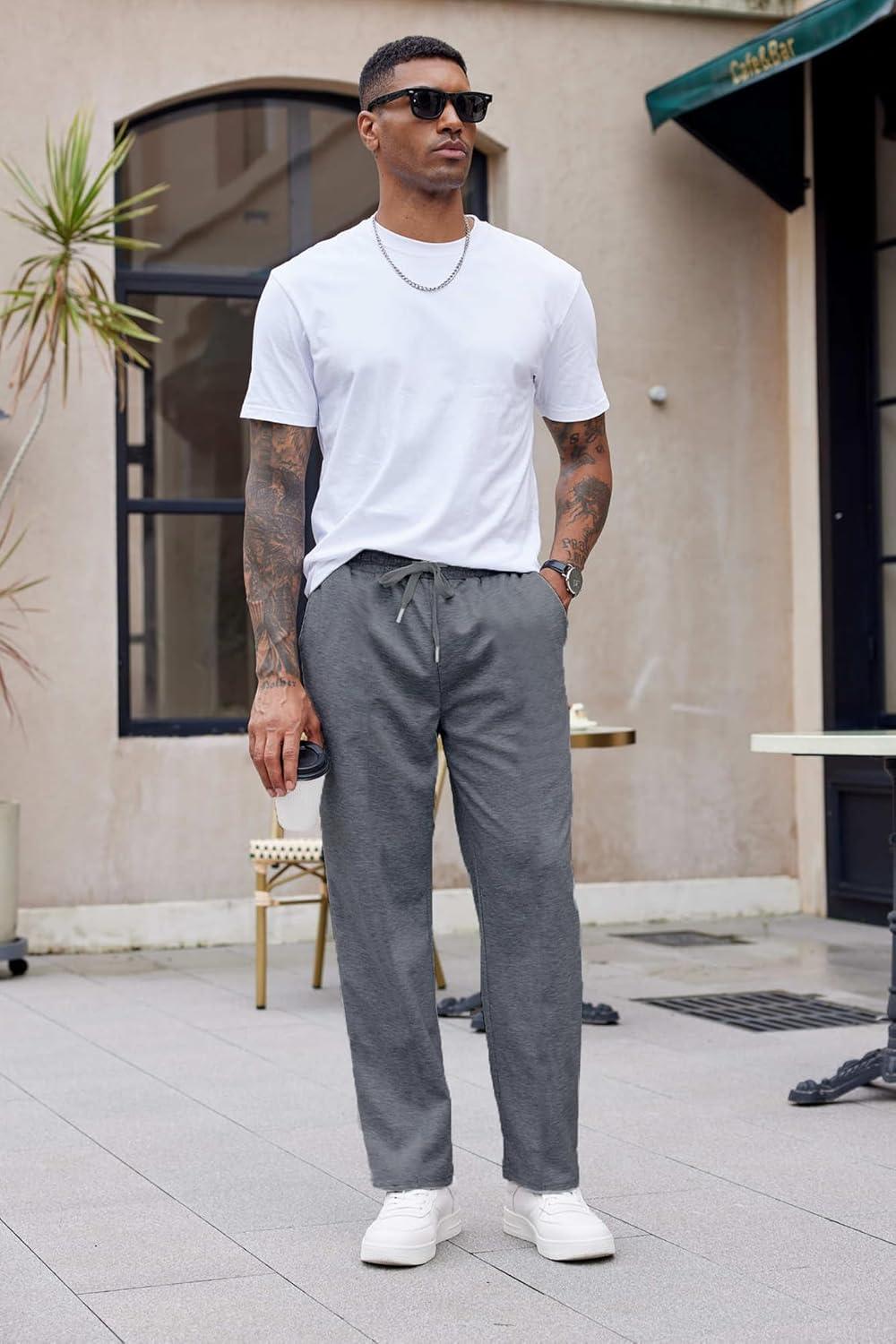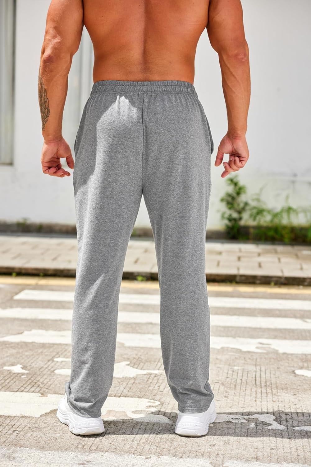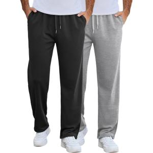 COOFANDY Men’s Cotton Sweatpants Open Bottom Lounge Pants Lightweight Casual Jogger Pants with Pockets(2 Pack: Black/Grey)