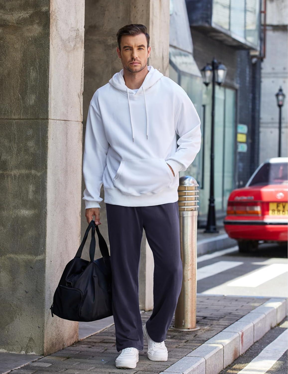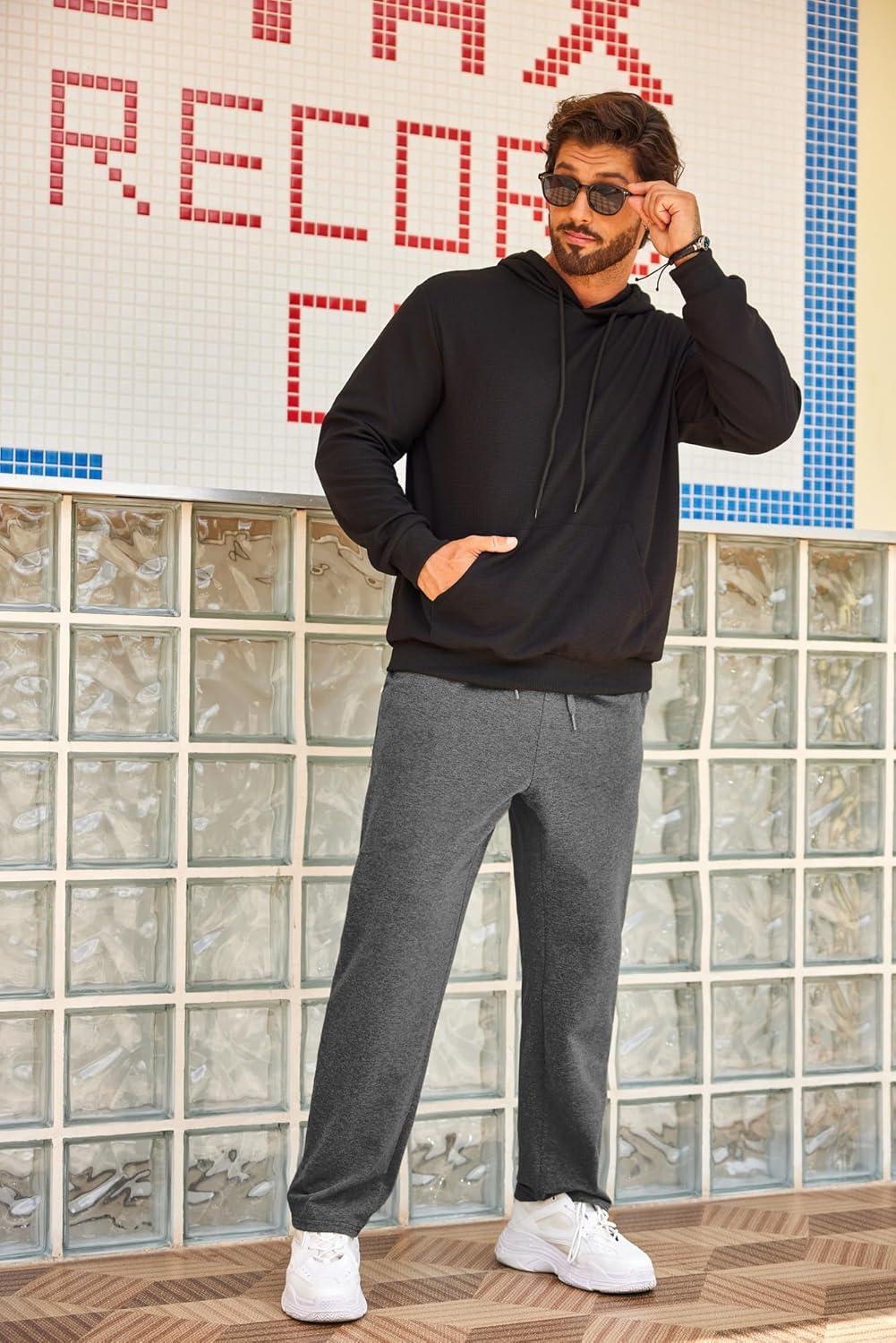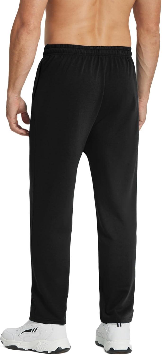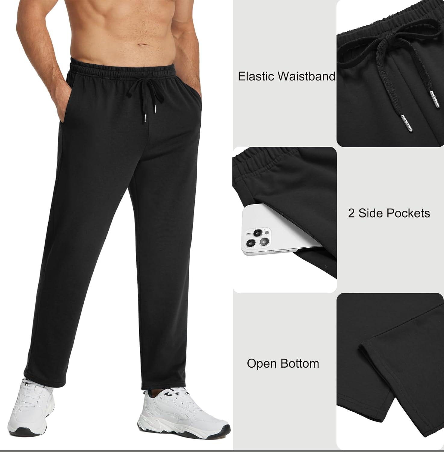 COOFANDY Men’s Cotton Sweatpants Open Bottom Lounge Pants Lightweight Casual Jogger Pants with Pockets(Black)