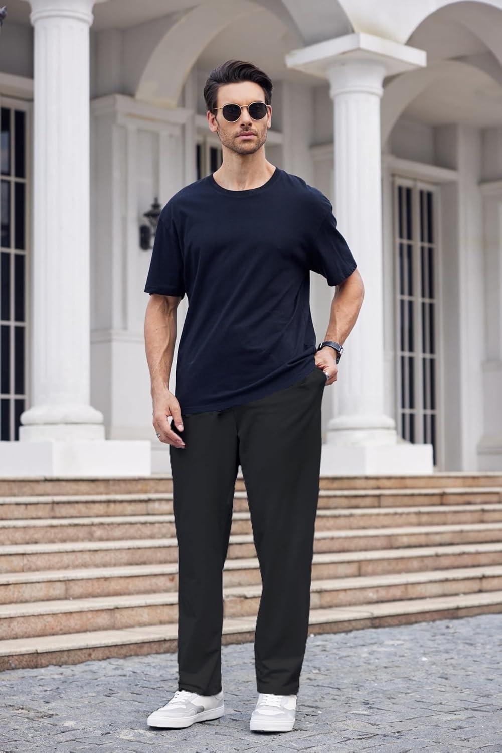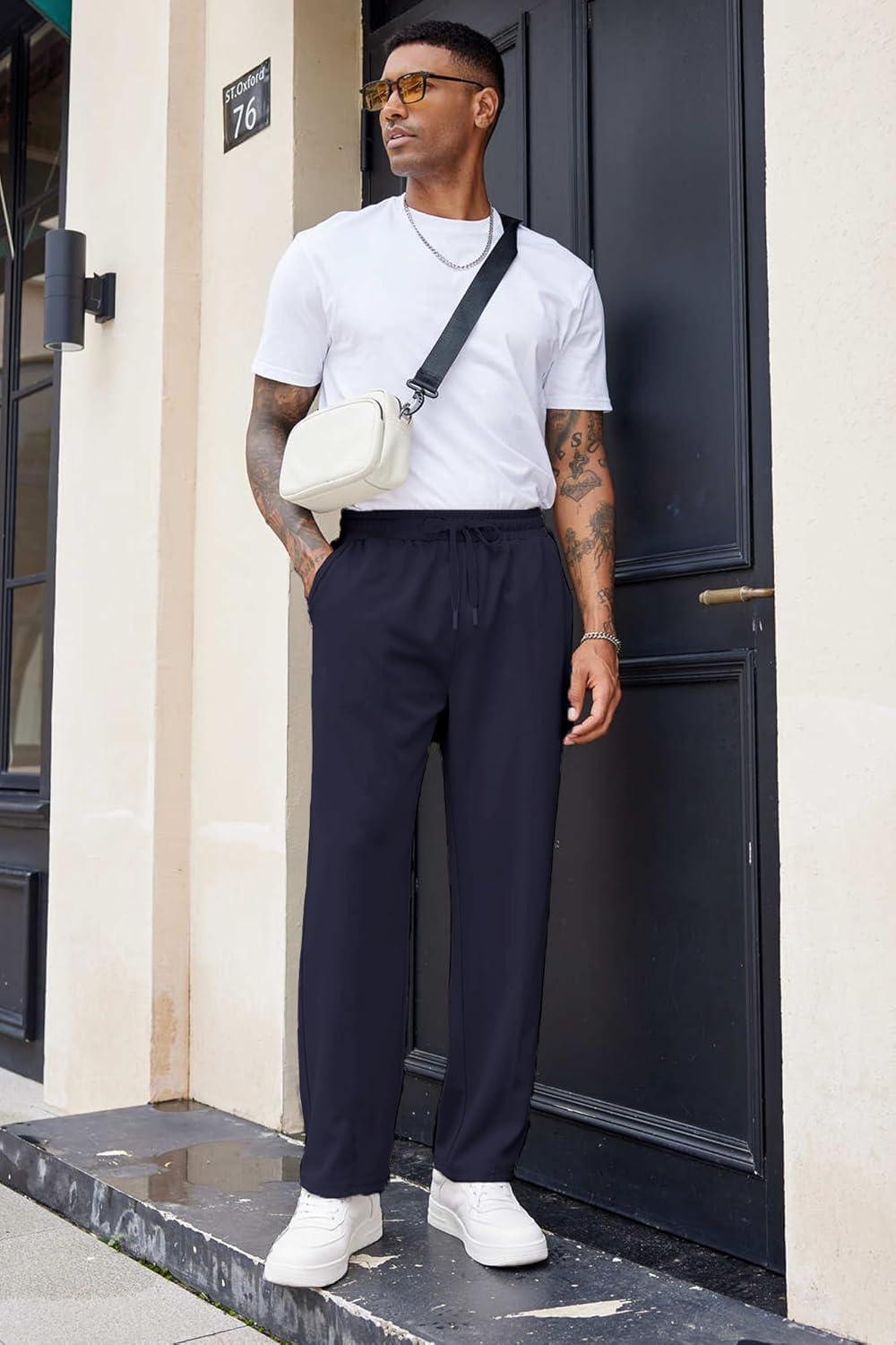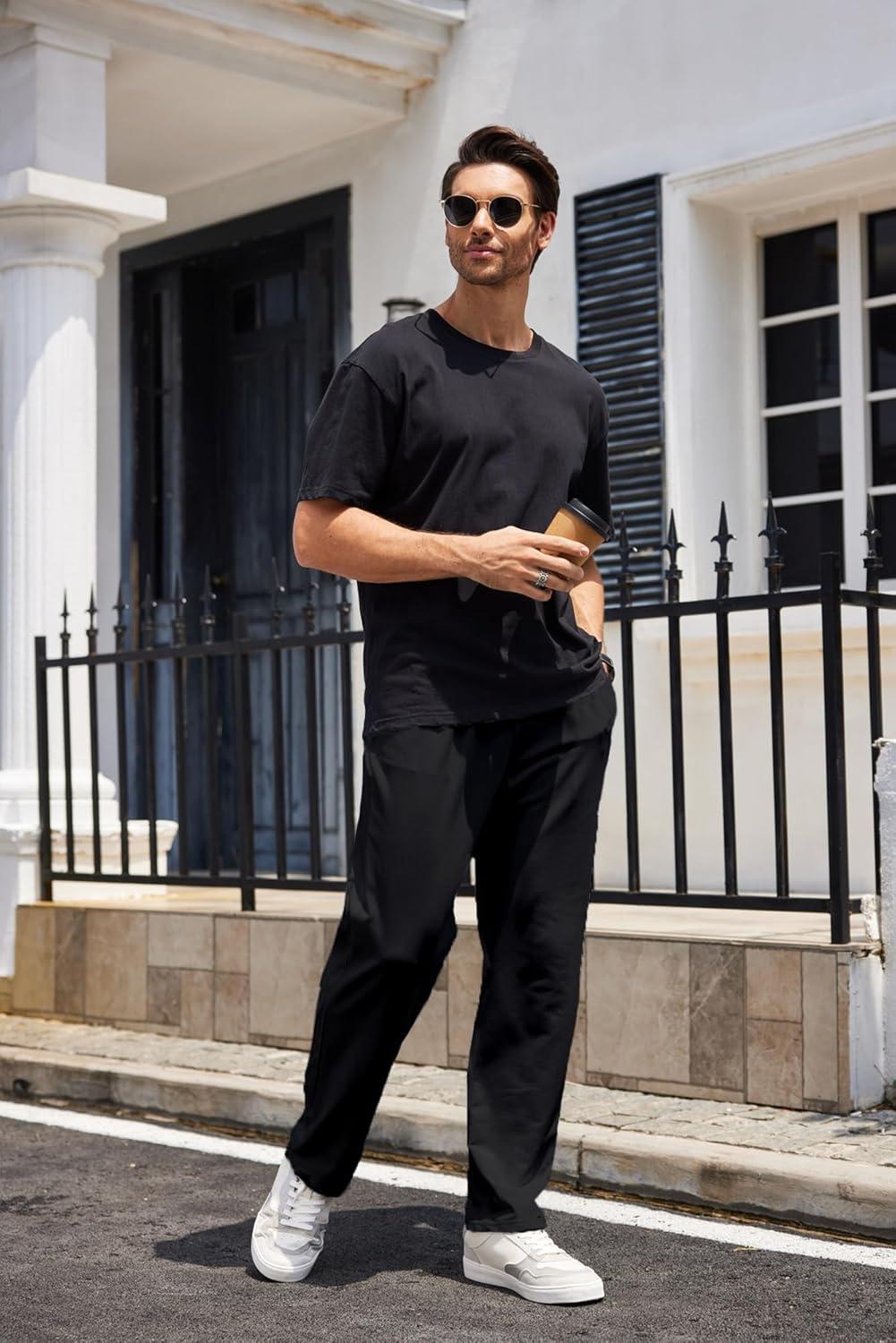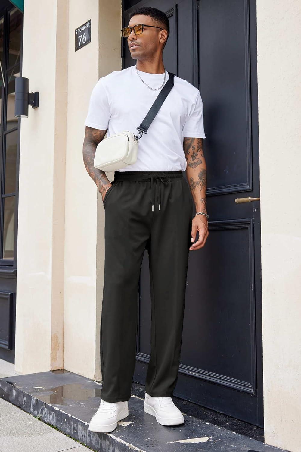 COOFANDY Men’s Cotton Sweatpants Open Bottom Lounge Pants Lightweight Casual Jogger Pants with Pockets(Black)