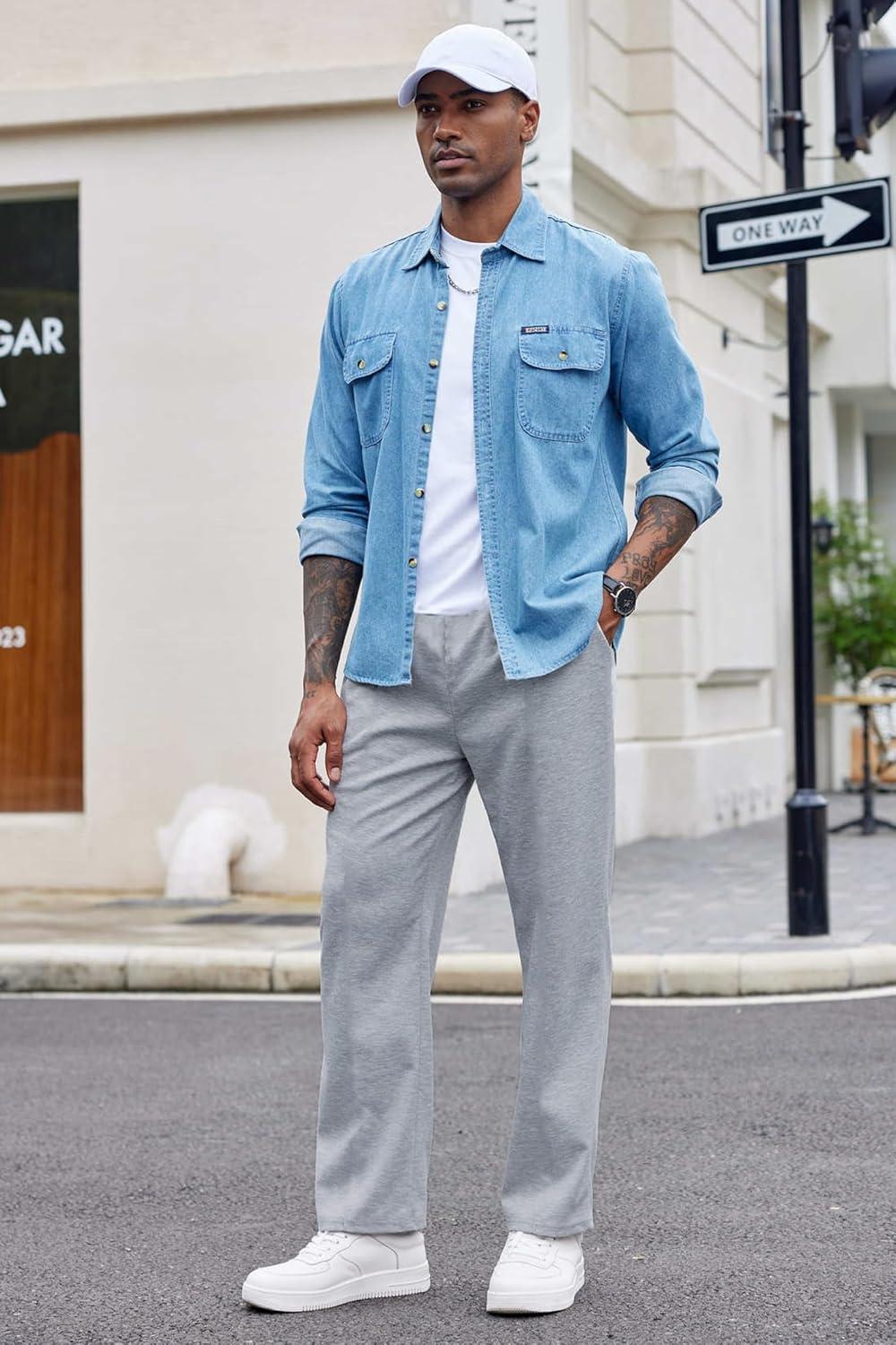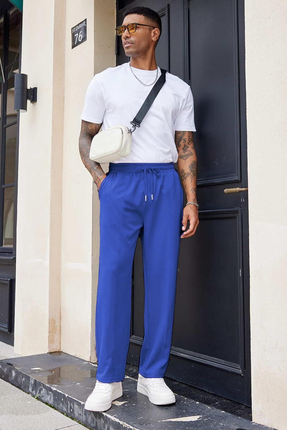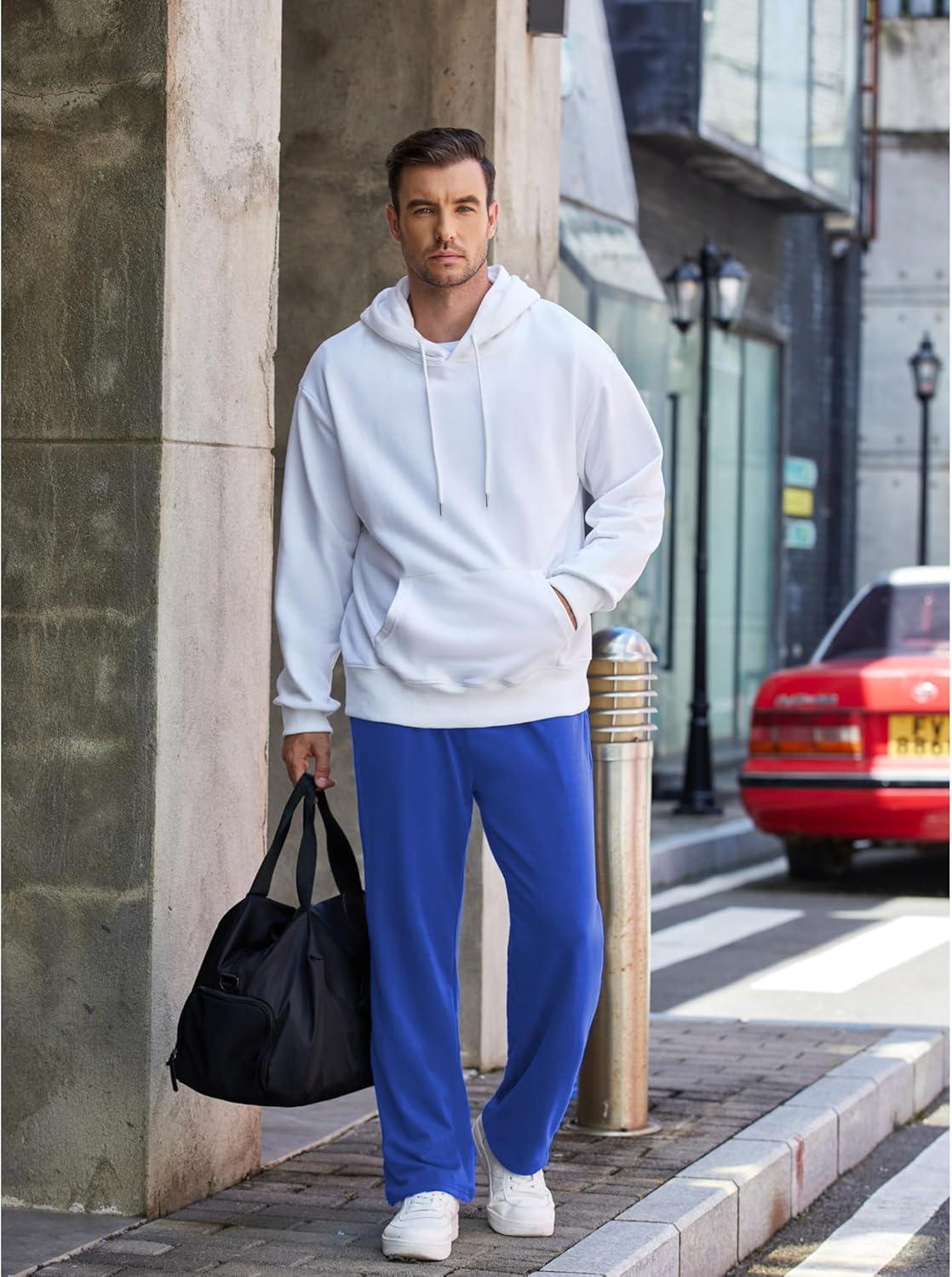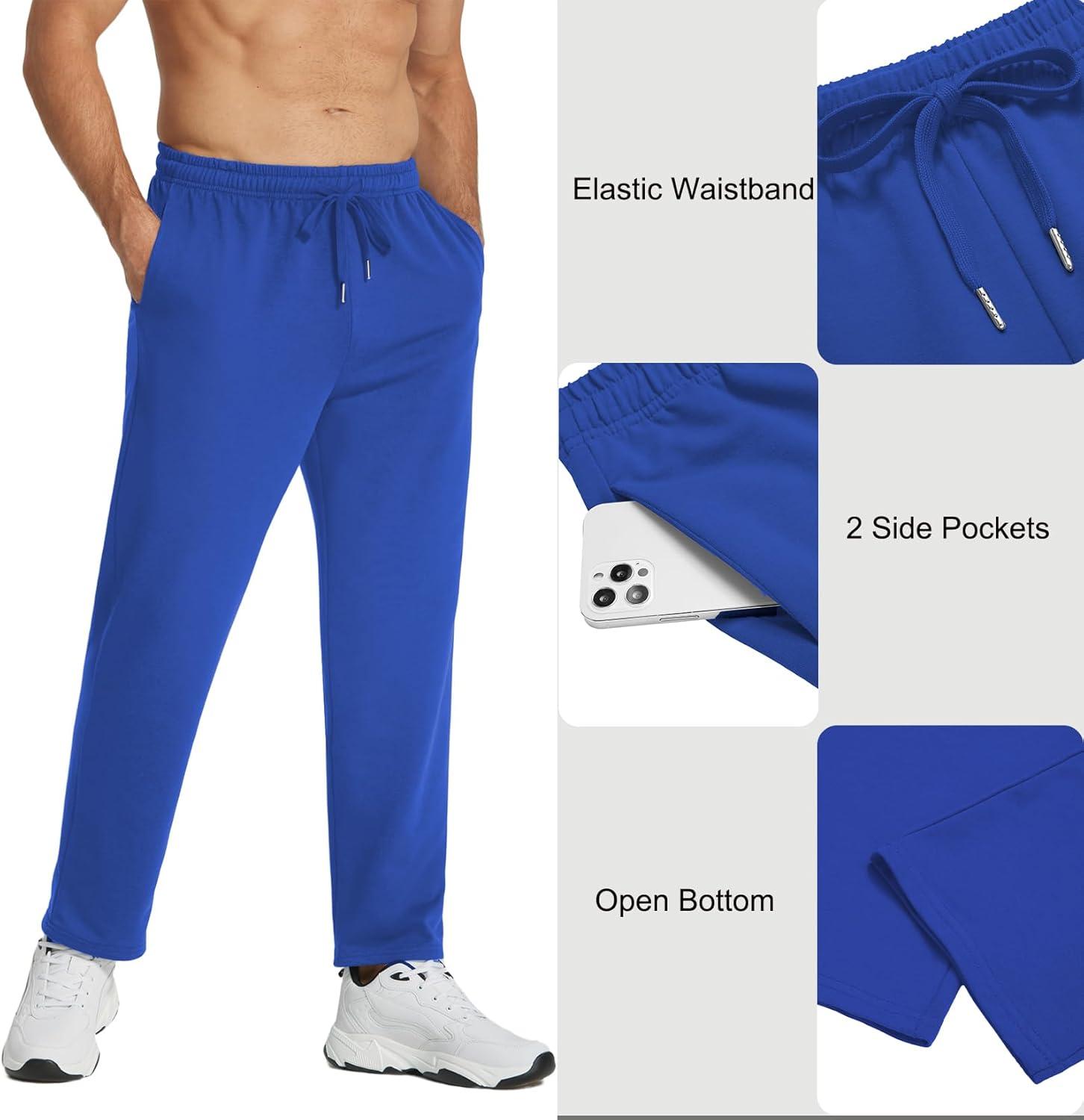 COOFANDY Men’s Cotton Sweatpants Open Bottom Lounge Pants Lightweight Casual Jogger Pants with Pockets(Blue)