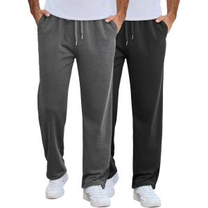 COOFANDY Men’s Cotton Sweatpants Open Bottom Lounge Pants Lightweight Casual Jogger Pants with Pockets(2 Pack: Black/Dark Grey)