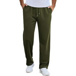 COOFANDY Men’s Cotton Sweatpants Open Bottom Lounge Pants Lightweight Casual Jogger Pants with Pockets(Army Green)