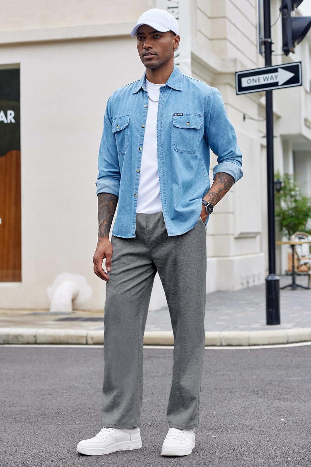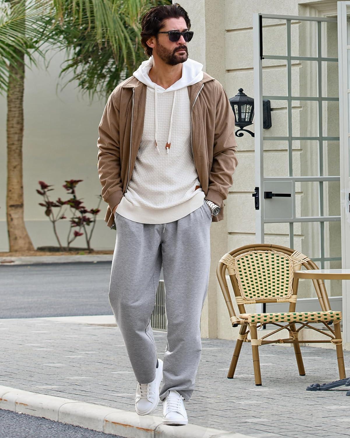 COOFANDY Men’s Cotton Sweatpants Open Bottom Lounge Pants Lightweight Casual Jogger Pants with Pockets(Grey)