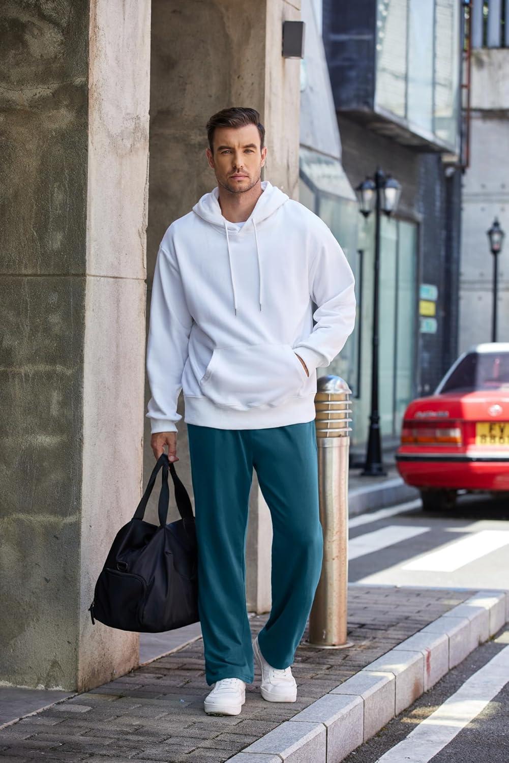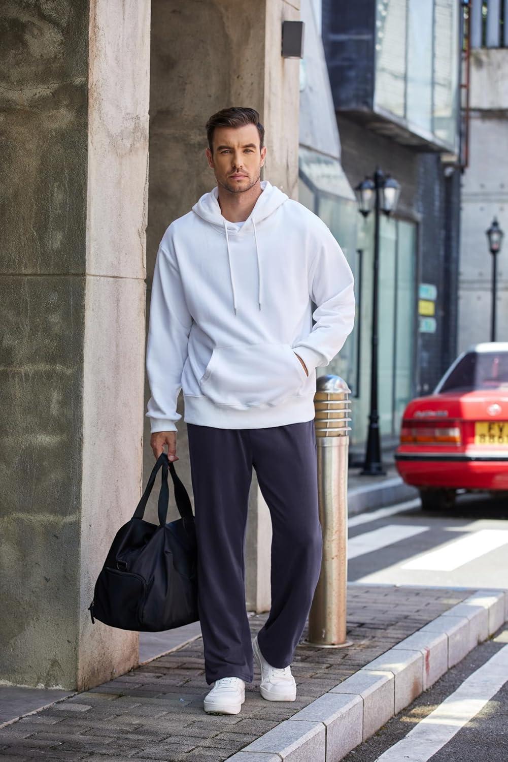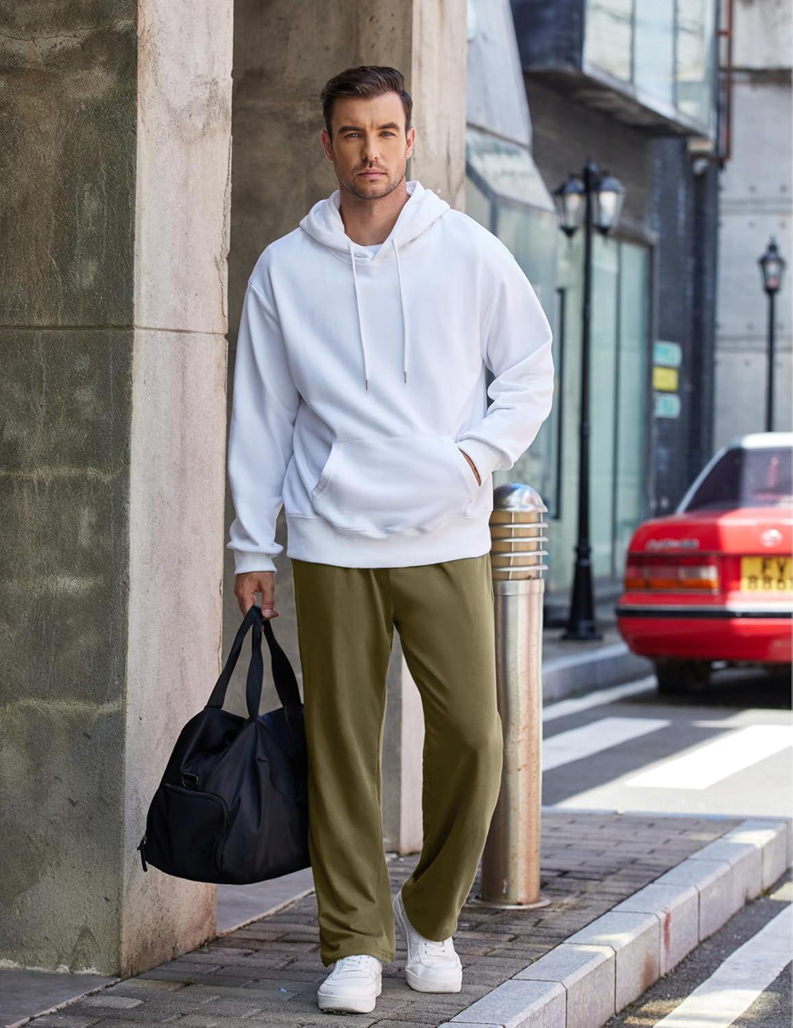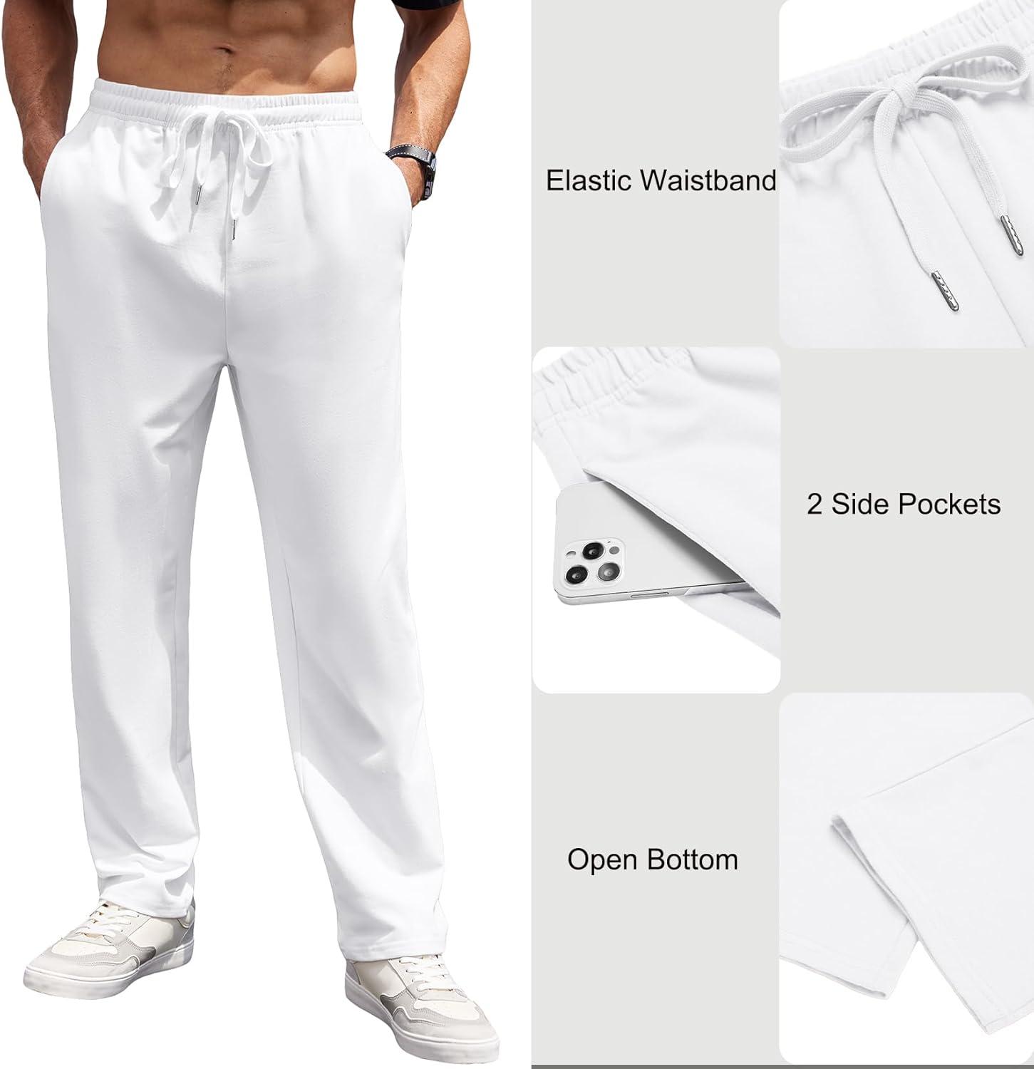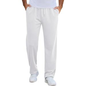 COOFANDY Men’s Cotton Sweatpants Open Bottom Lounge Pants Lightweight Casual Jogger Pants with Pockets(White)