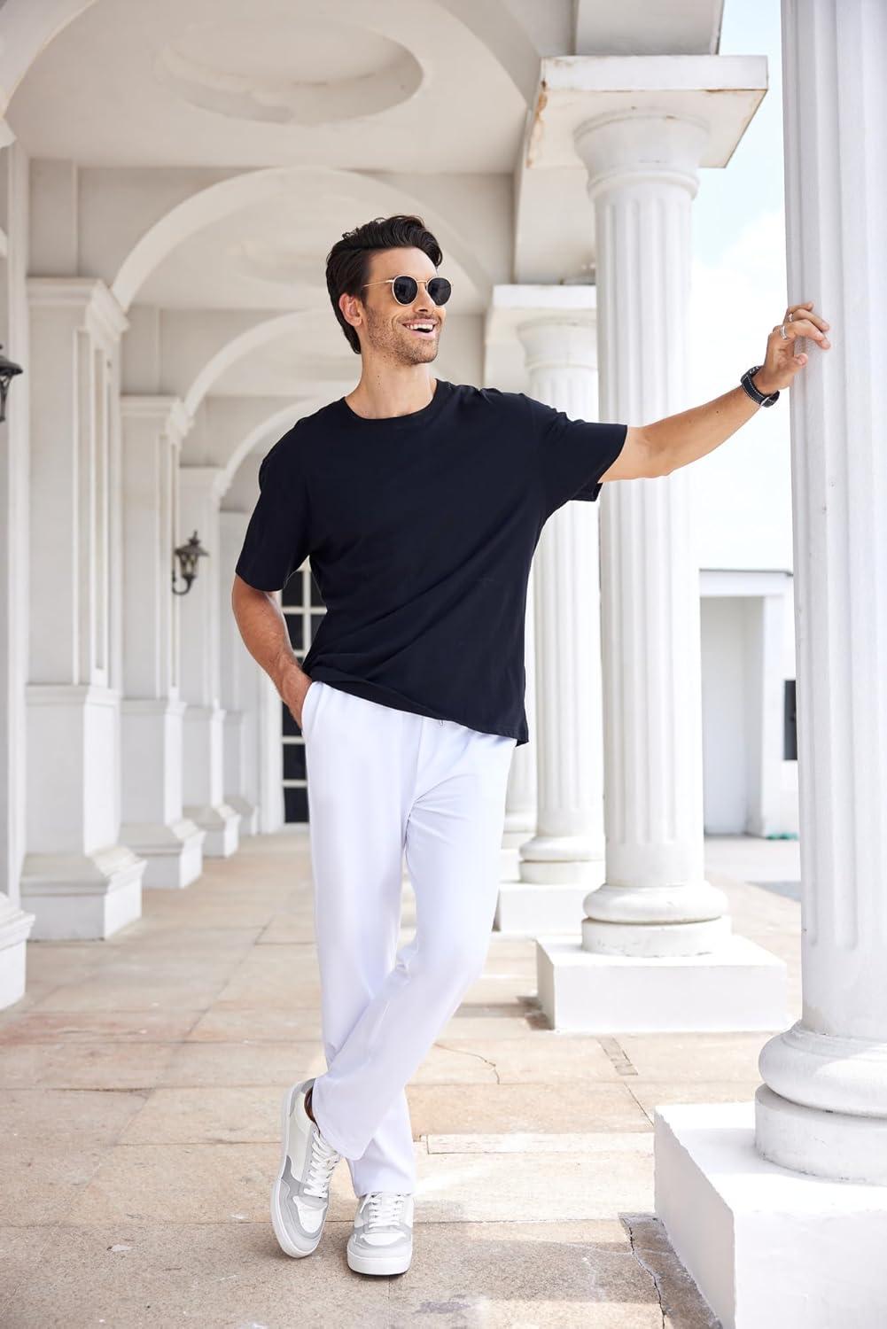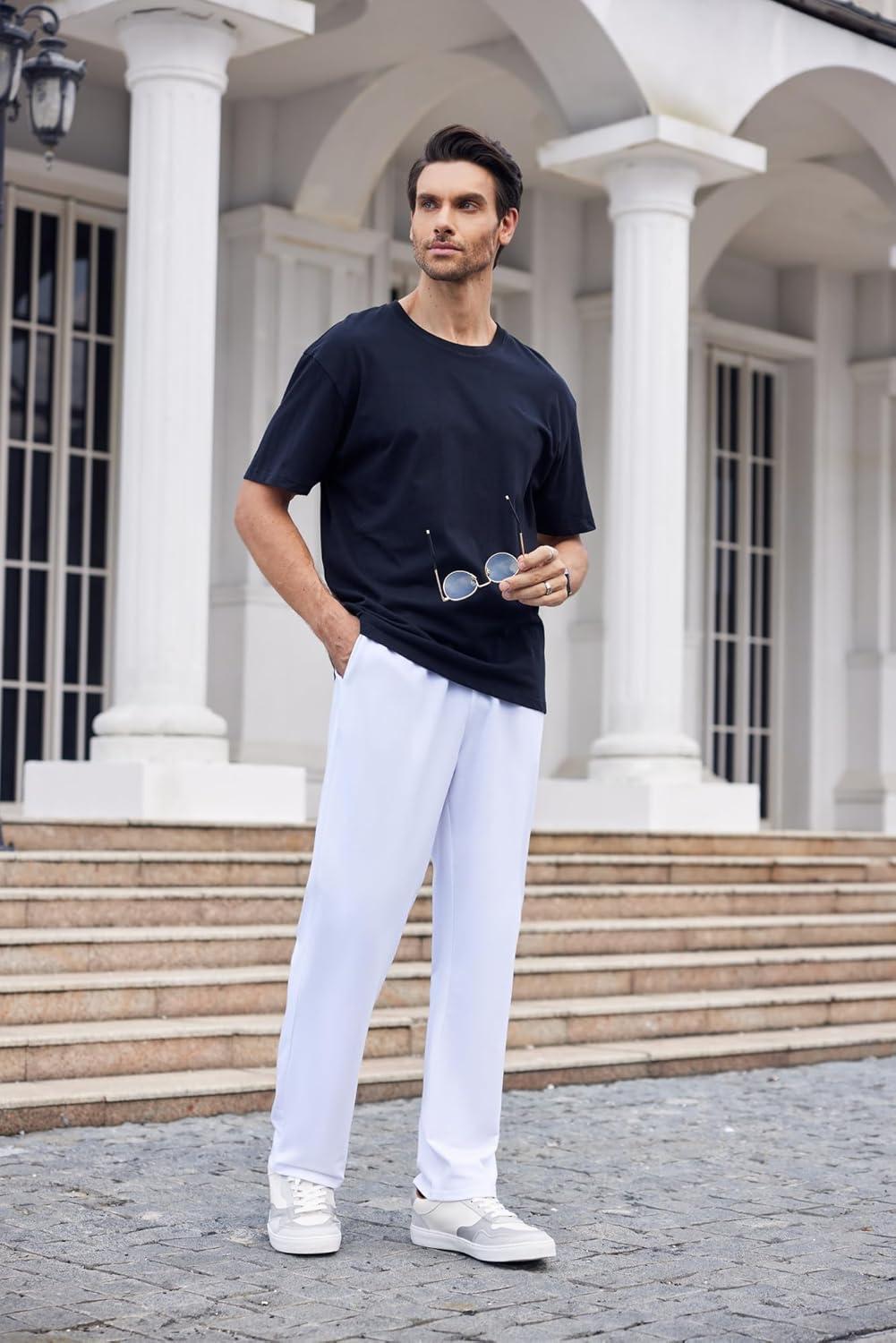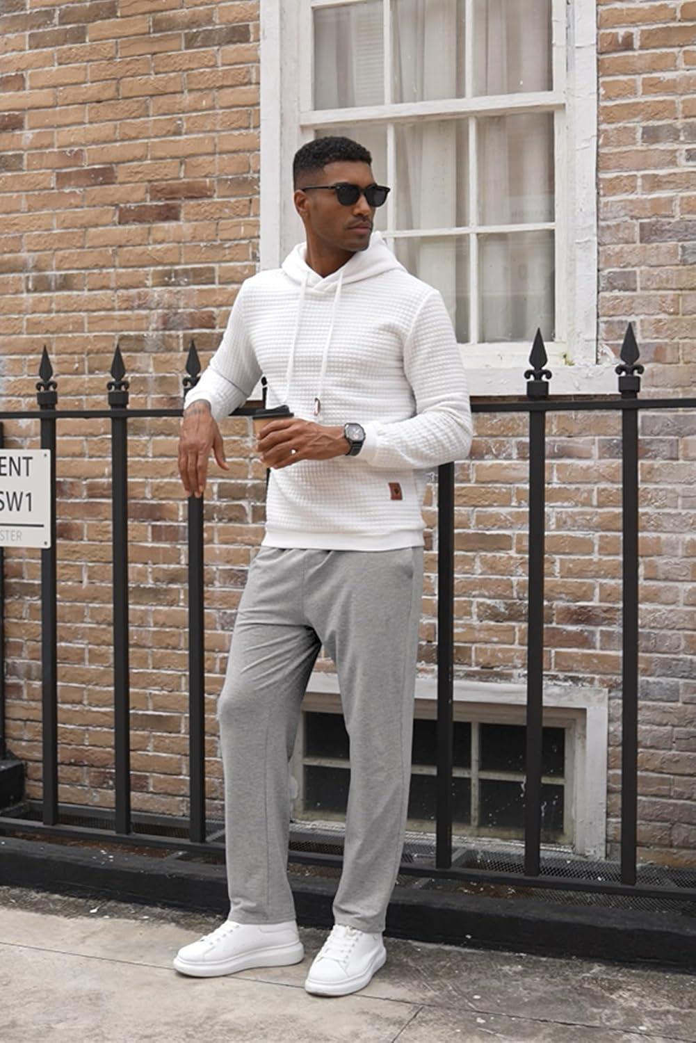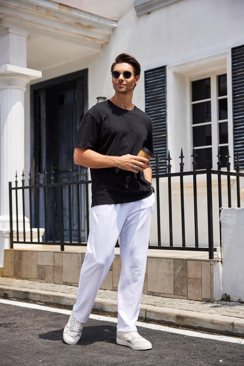 COOFANDY Men’s Cotton Sweatpants Open Bottom Lounge Pants Lightweight Casual Jogger Pants with Pockets(White)