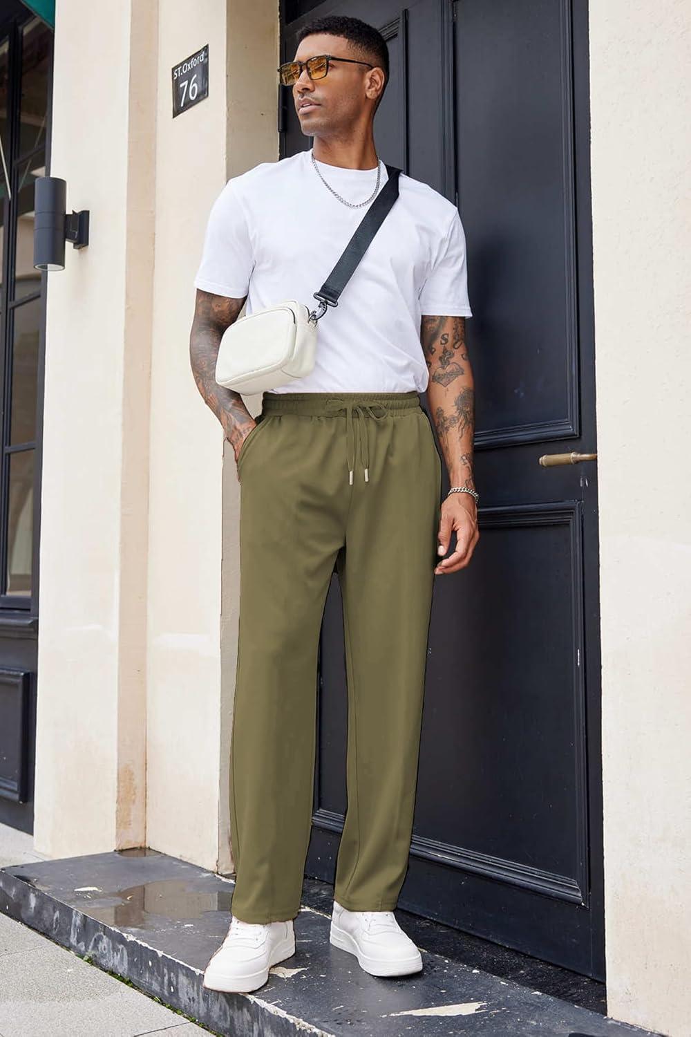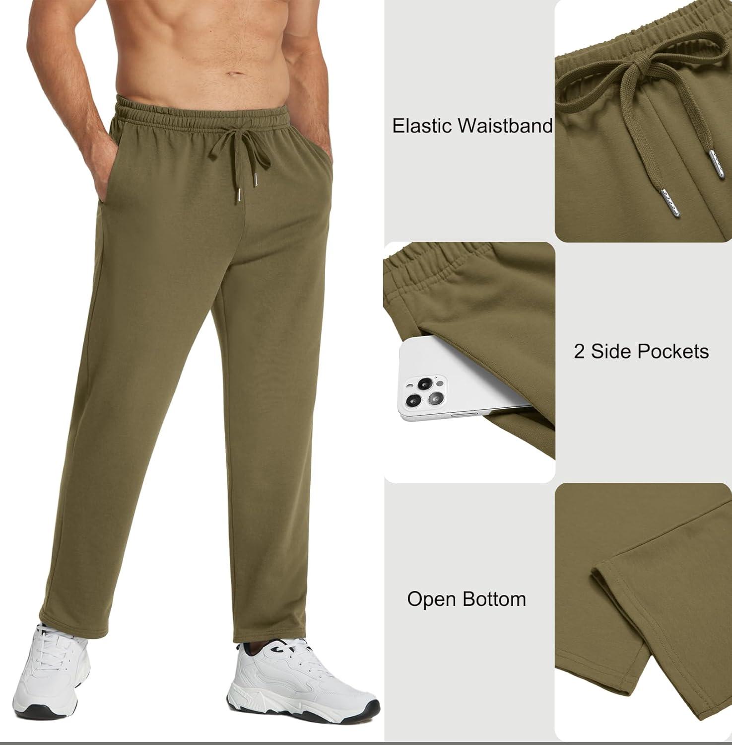 COOFANDY Men’s Cotton Sweatpants Open Bottom Lounge Pants Lightweight Casual Jogger Pants with Pockets(Khaki)