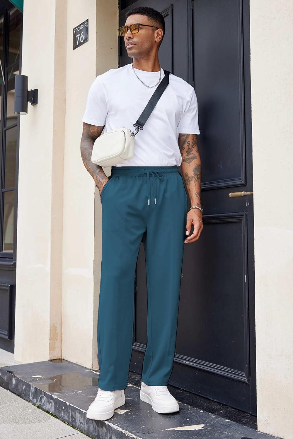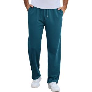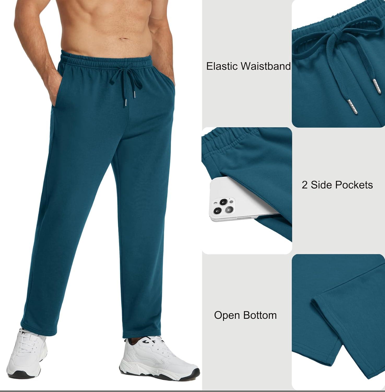 COOFANDY Men’s Cotton Sweatpants Open Bottom Lounge Pants Lightweight Casual Jogger Pants with Pockets(Navy Ocean Blue)