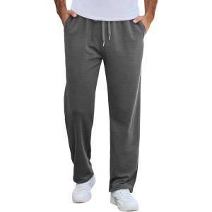 COOFANDY Men’s Cotton Sweatpants Open Bottom Lounge Pants Lightweight Casual Jogger Pants with Pockets(Dark Grey)