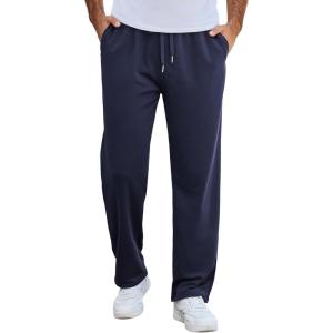 COOFANDY Men’s Cotton Sweatpants Open Bottom Lounge Pants Lightweight Casual Jogger Pants with Pockets(Navy Blue)