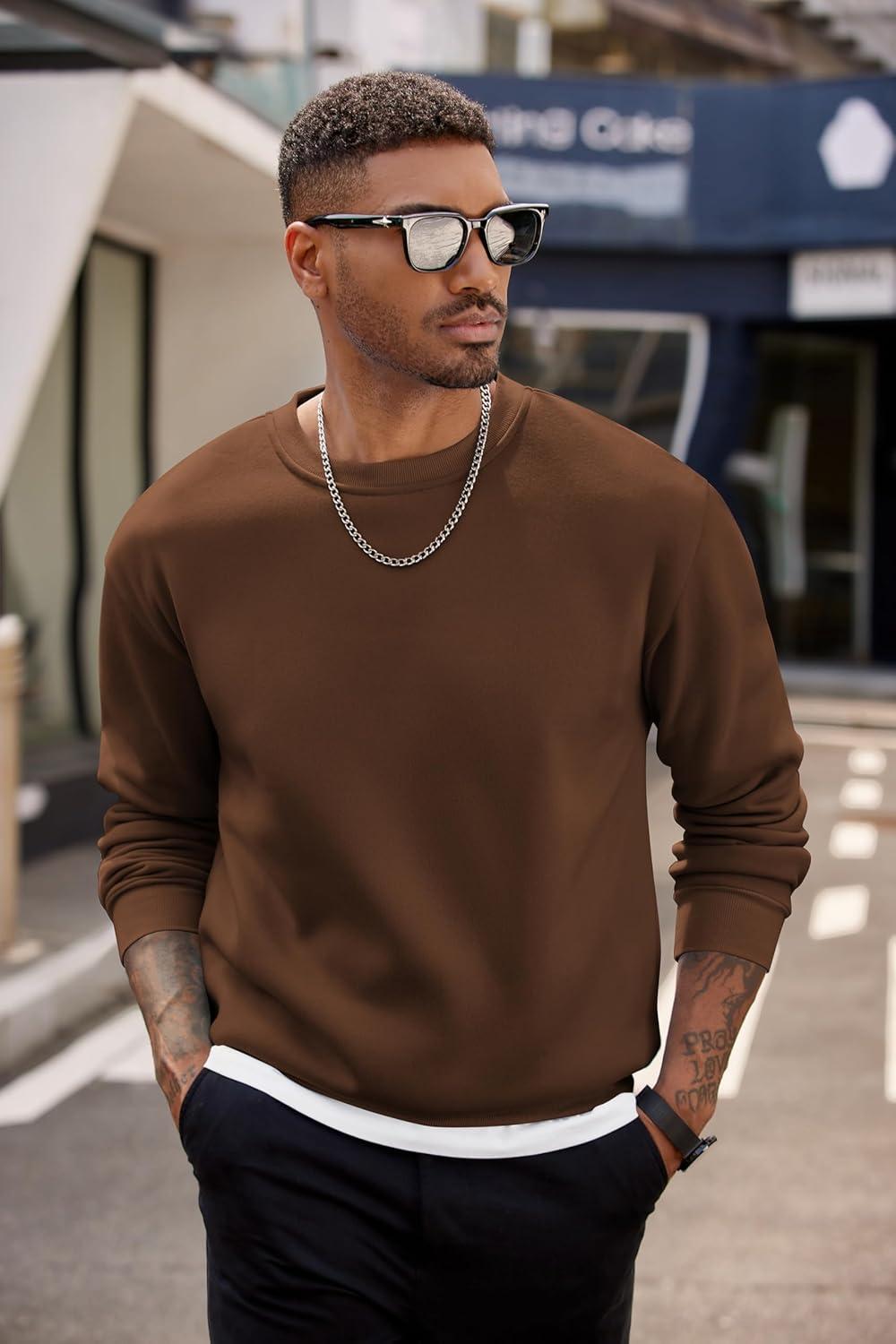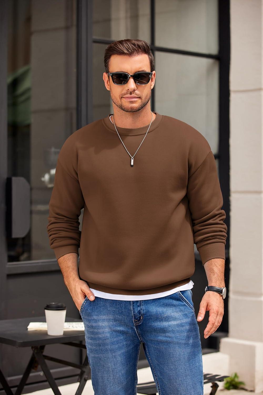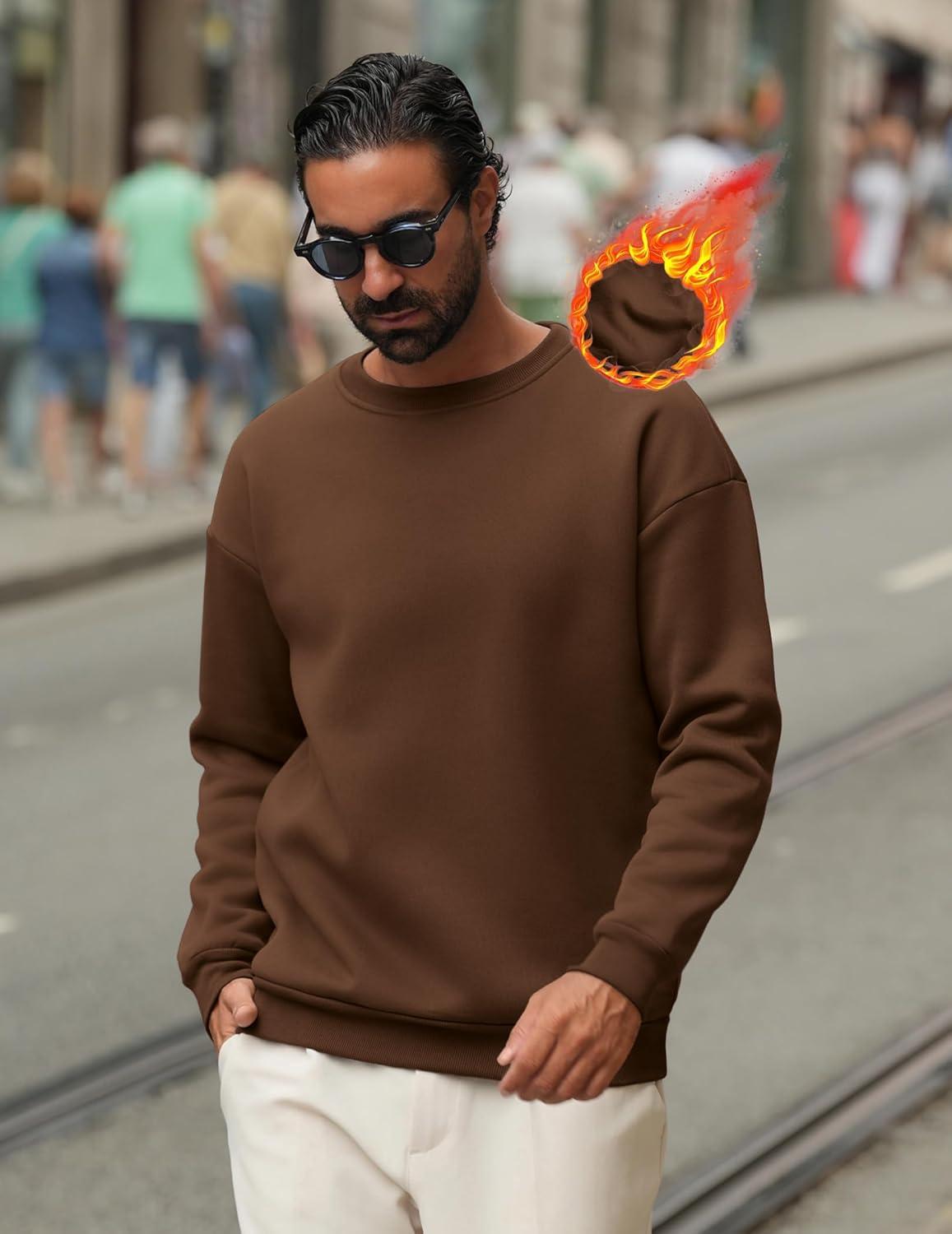 COOFANDY Men’s Crewneck Sweatshirts Long Sleeves Fleece Sweatshirts Thermal Casual Pullover Shirt(Brown)