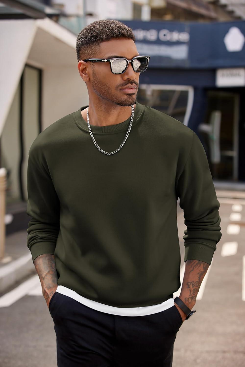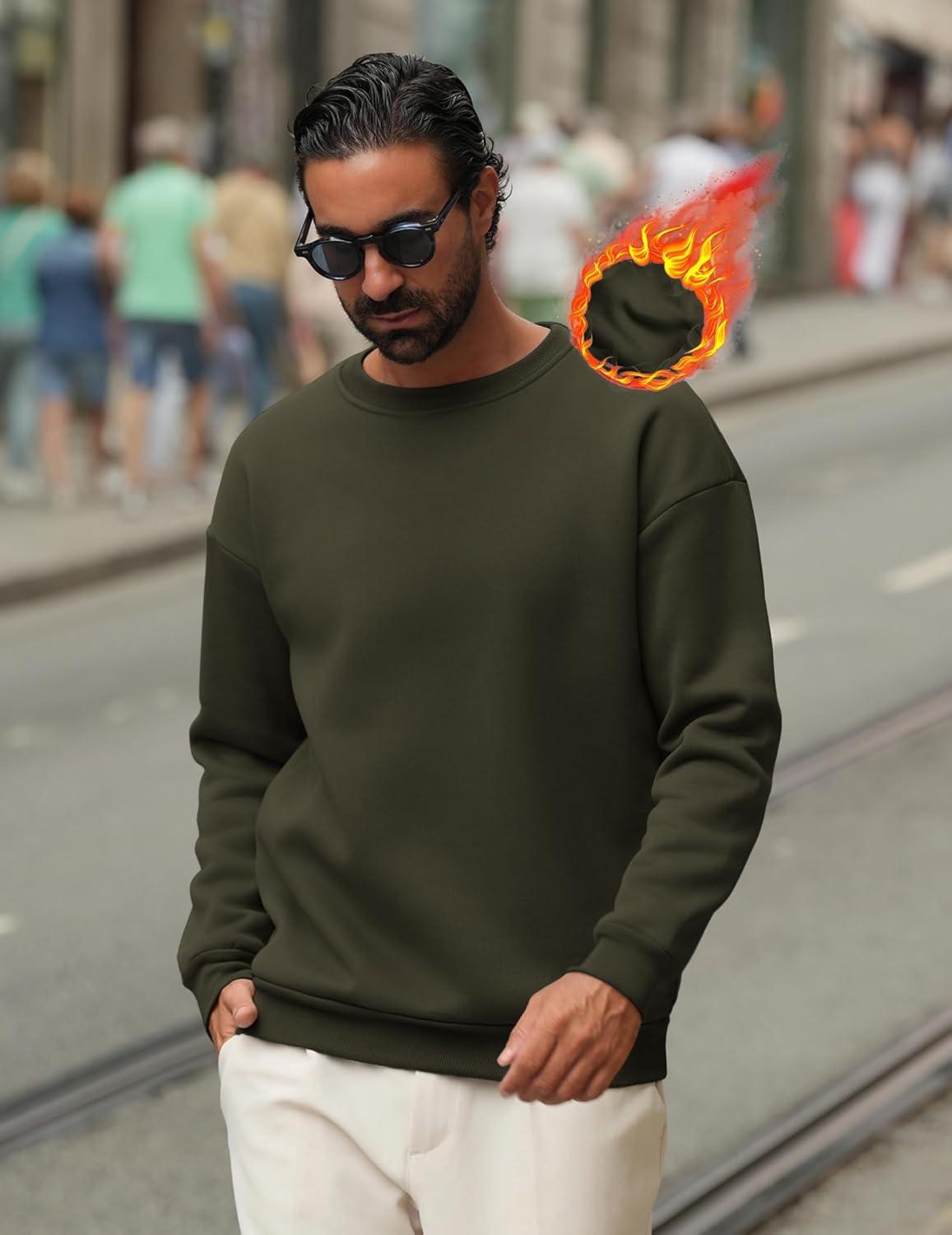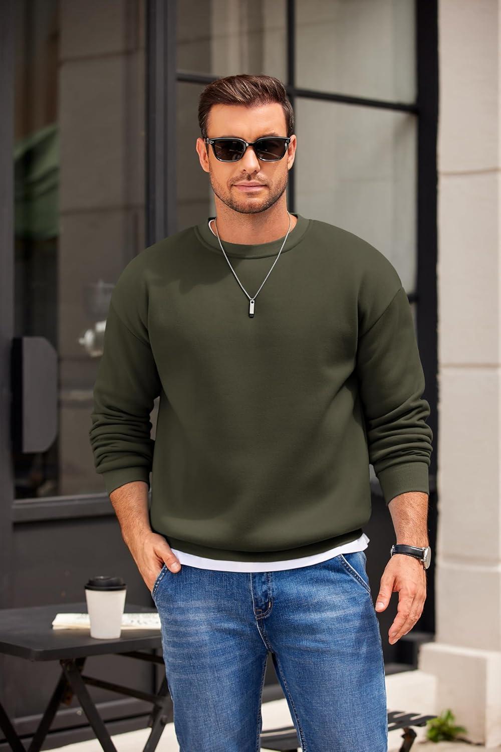 COOFANDY Men’s Crewneck Sweatshirts Long Sleeves Fleece Sweatshirts Thermal Casual Pullover Shirt(Dark Army Green)