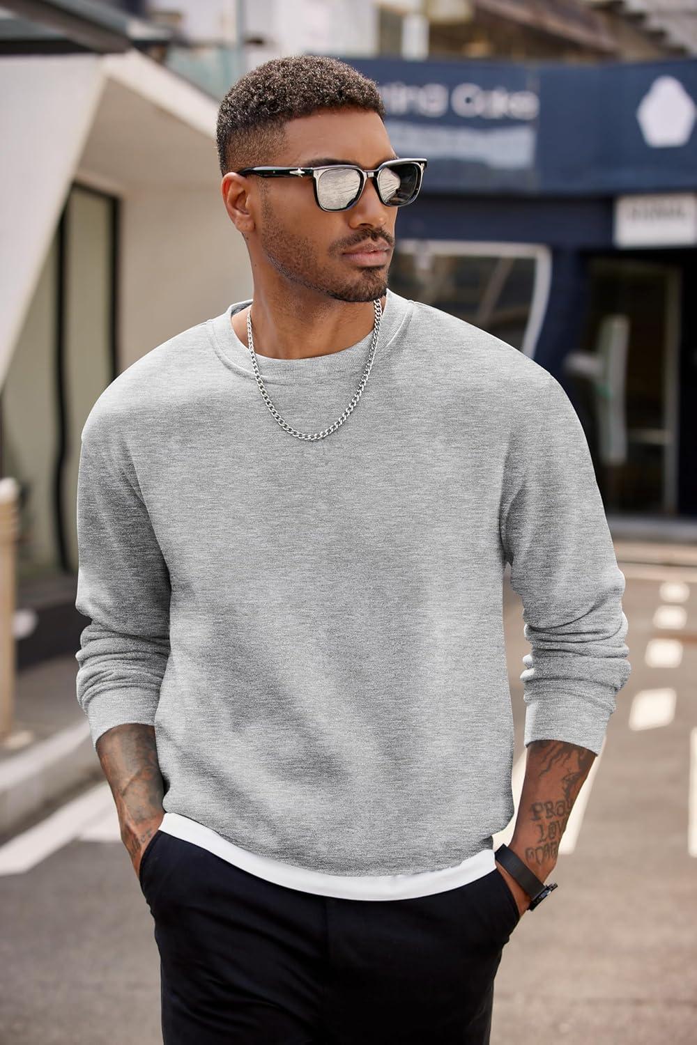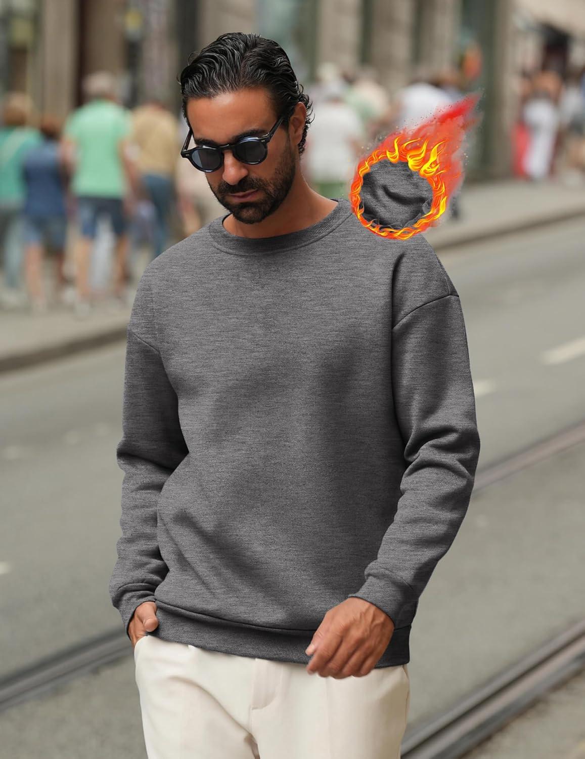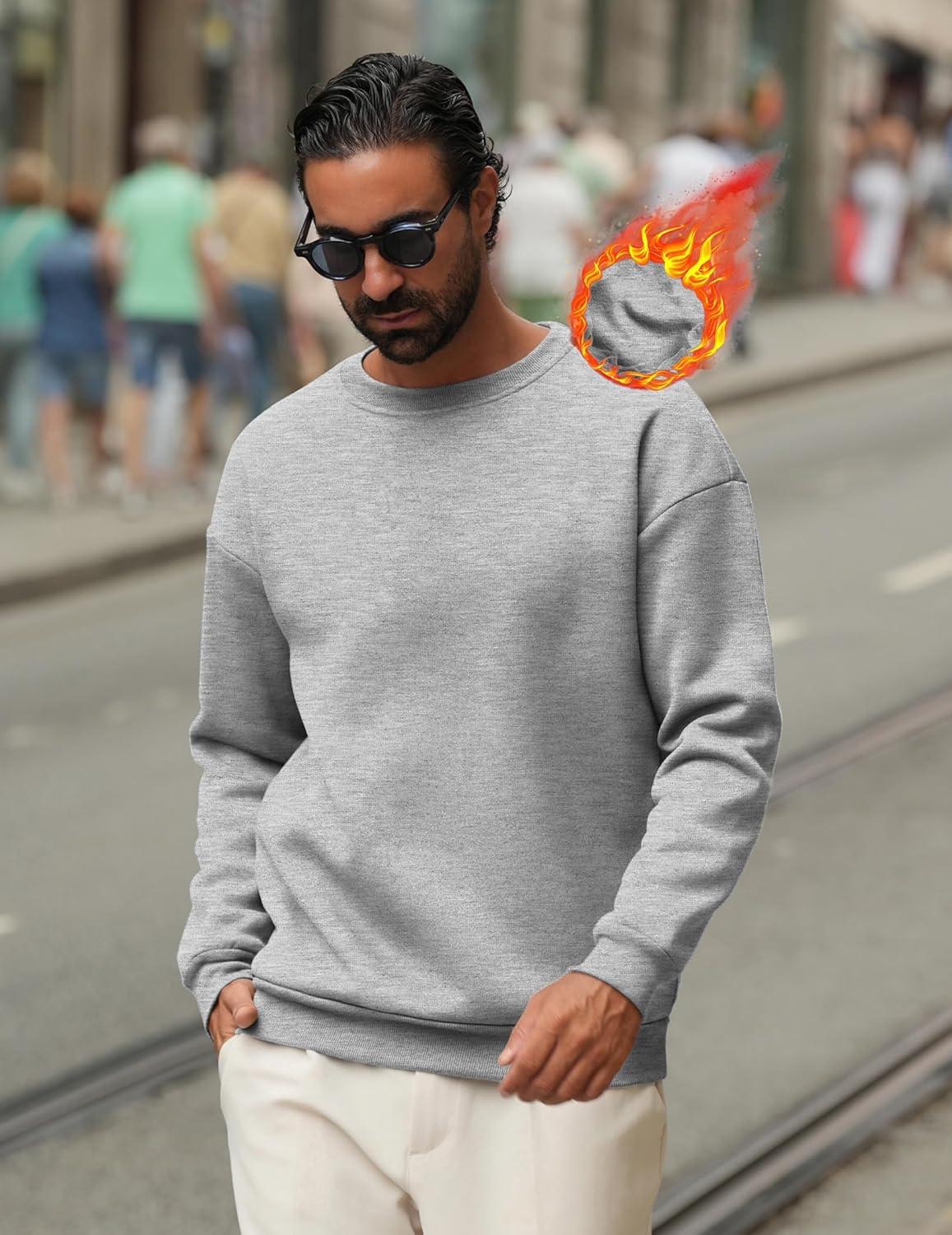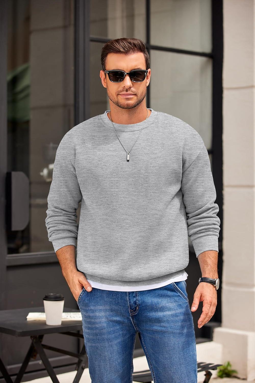 COOFANDY Men’s Crewneck Sweatshirts Long Sleeves Fleece Sweatshirts Thermal Casual Pullover Shirt(Light Gray)