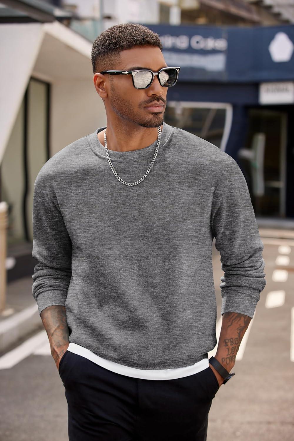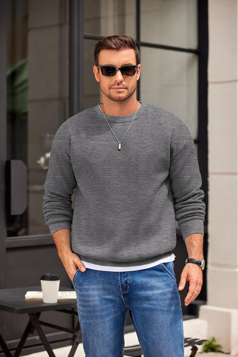 COOFANDY Men’s Crewneck Sweatshirts Long Sleeves Fleece Sweatshirts Thermal Casual Pullover Shirt(Dark Gray)
