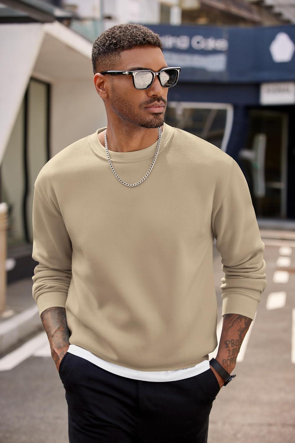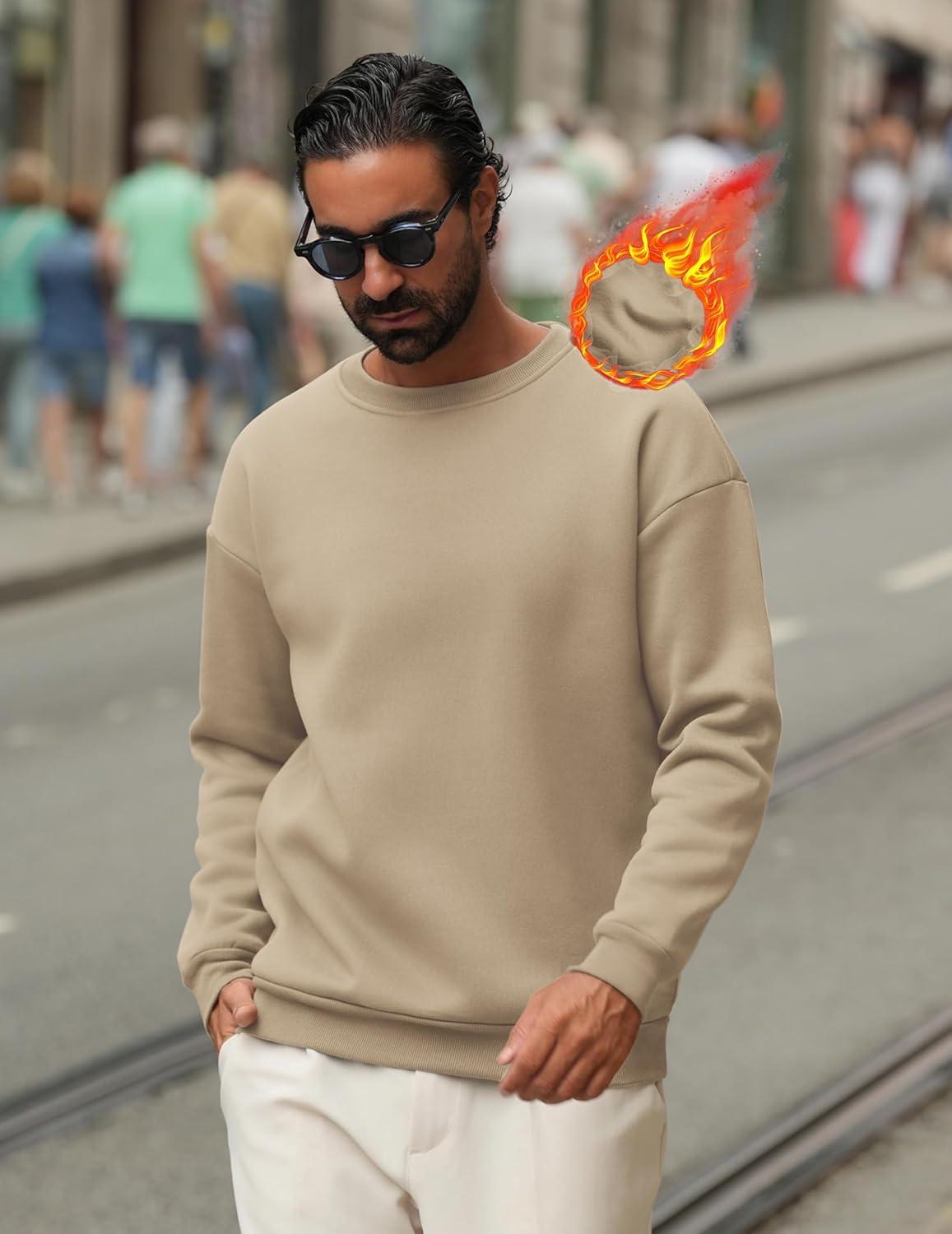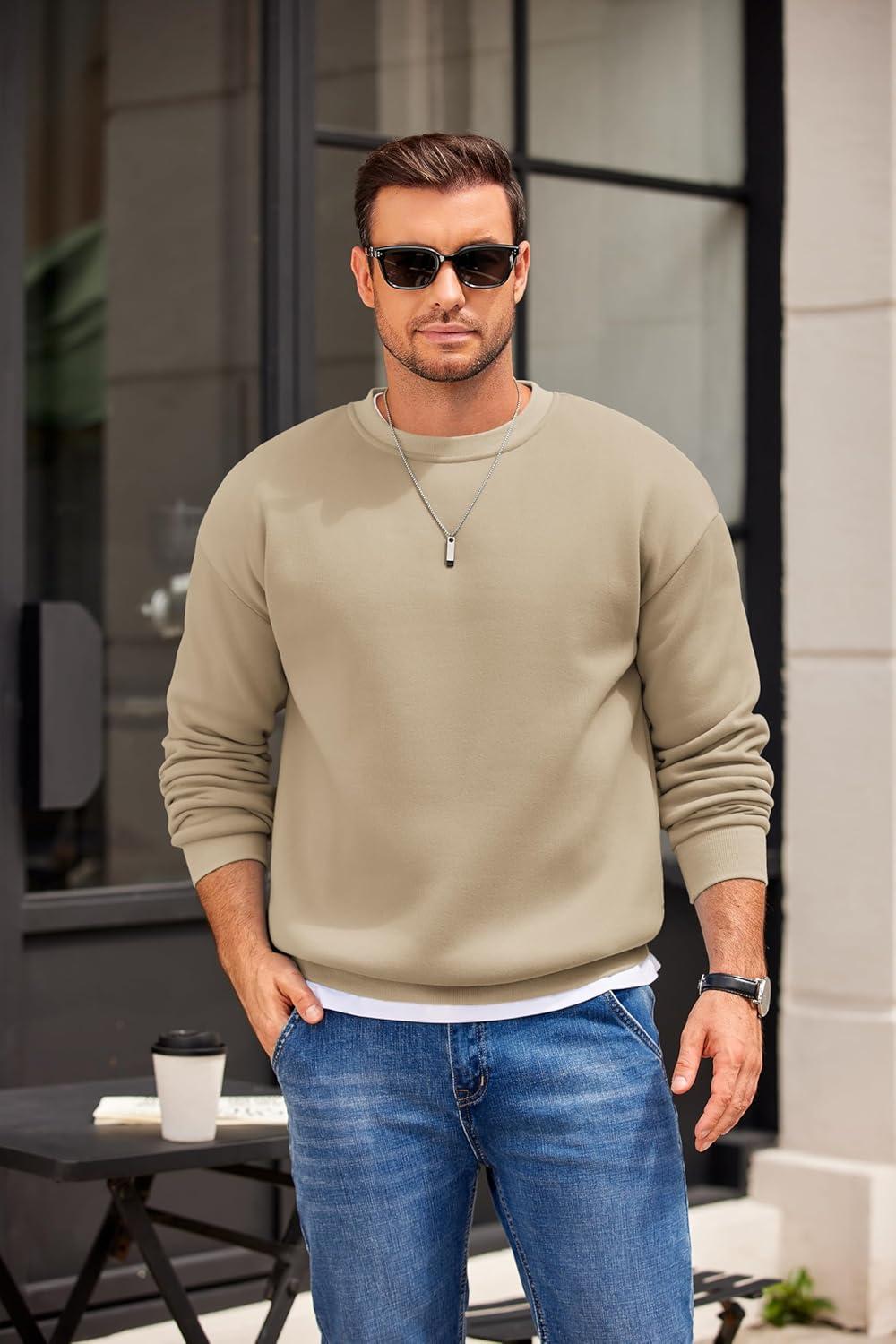 COOFANDY Men’s Crewneck Sweatshirts Long Sleeves Fleece Sweatshirts Thermal Casual Pullover Shirt(Khaki)