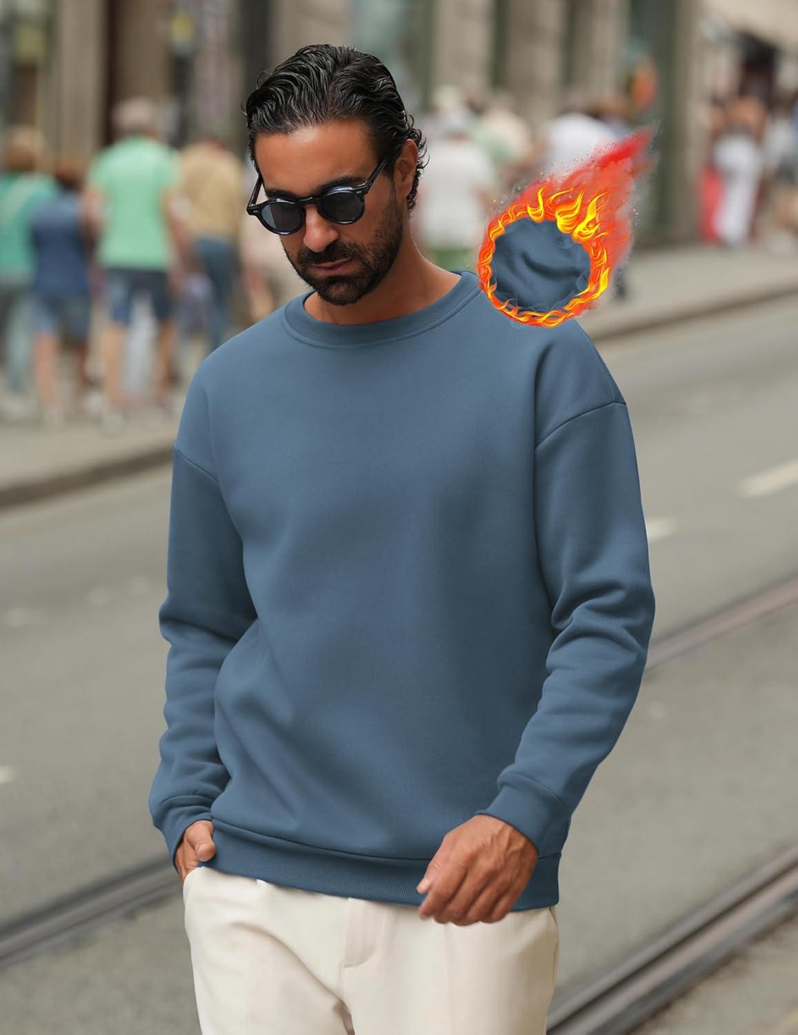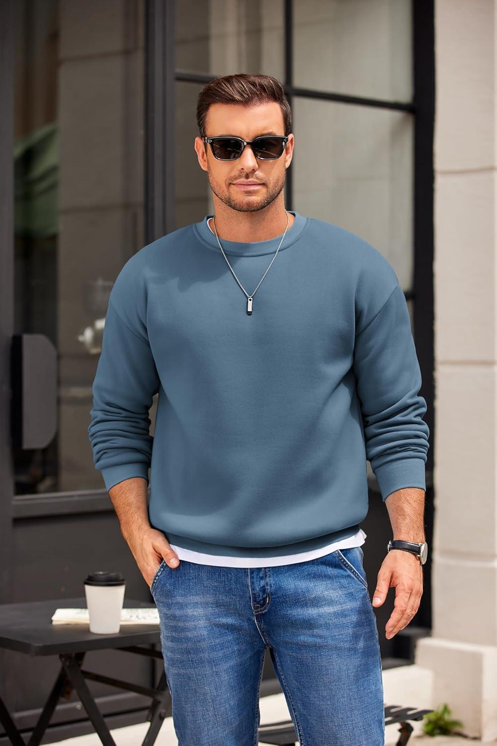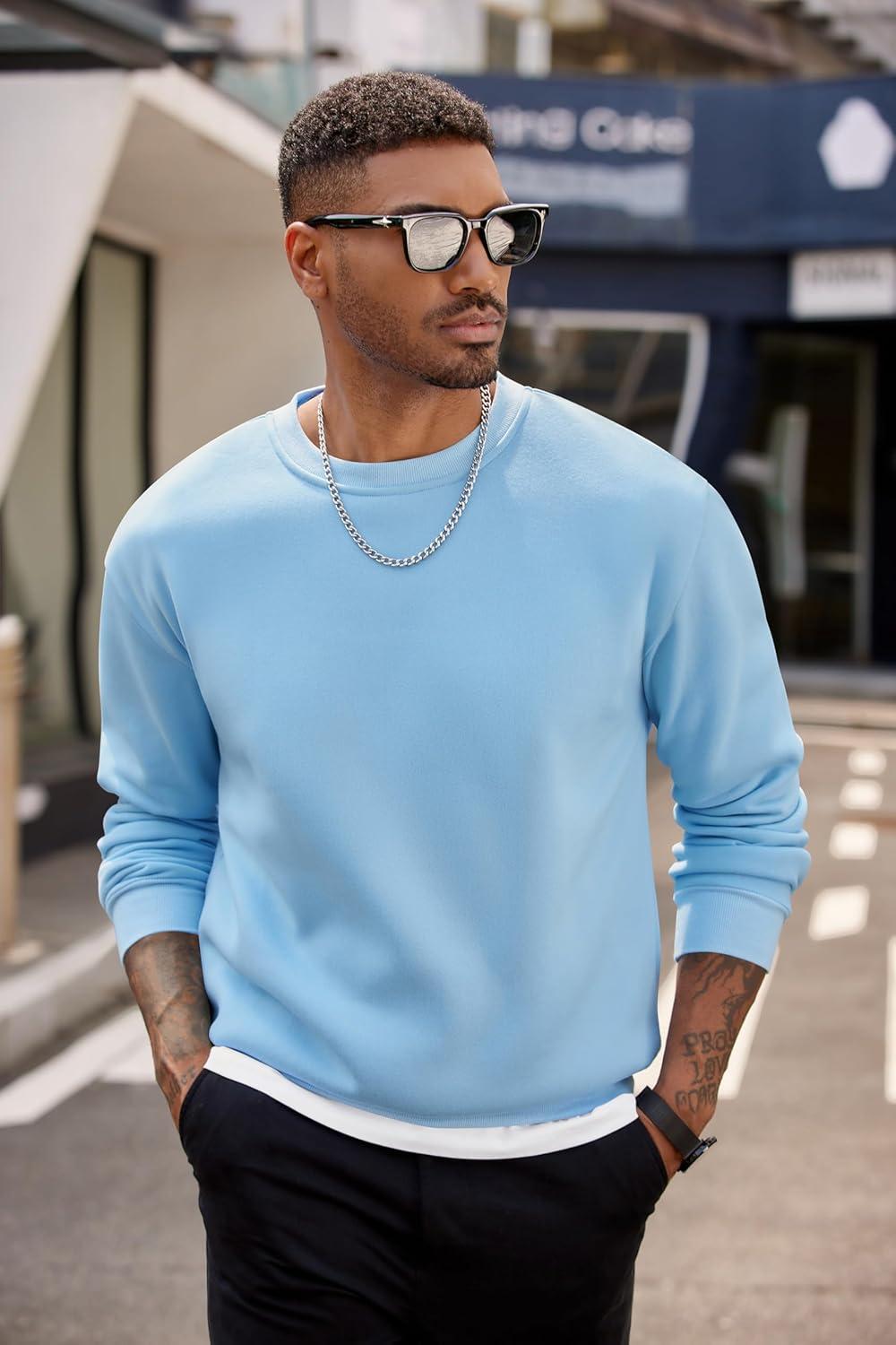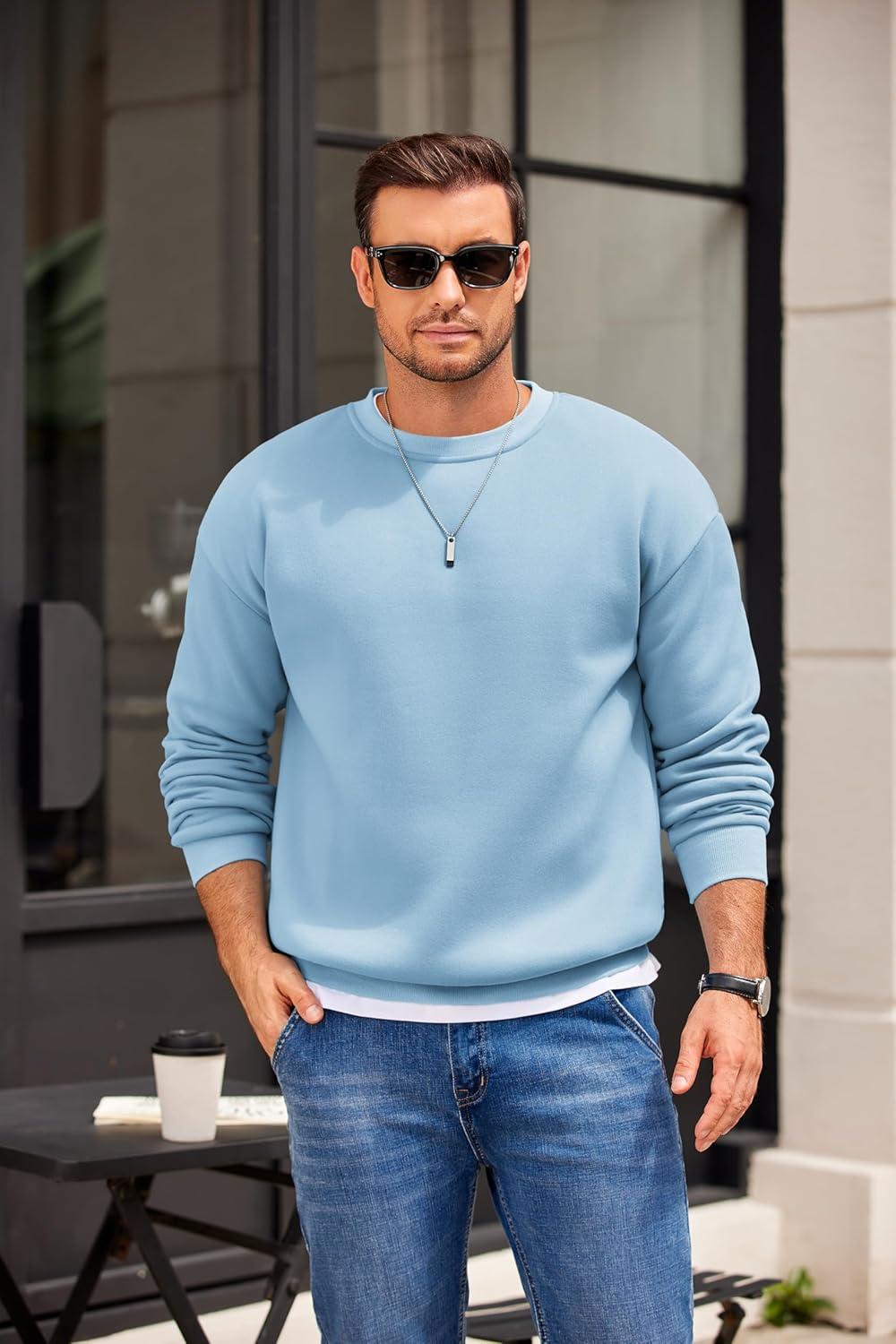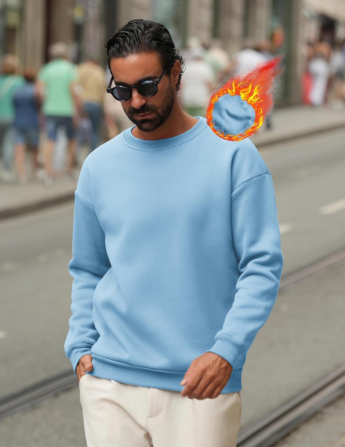 COOFANDY Men’s Crewneck Sweatshirts Long Sleeves Fleece Sweatshirts Thermal Casual Pullover Shirt(Light Blue)