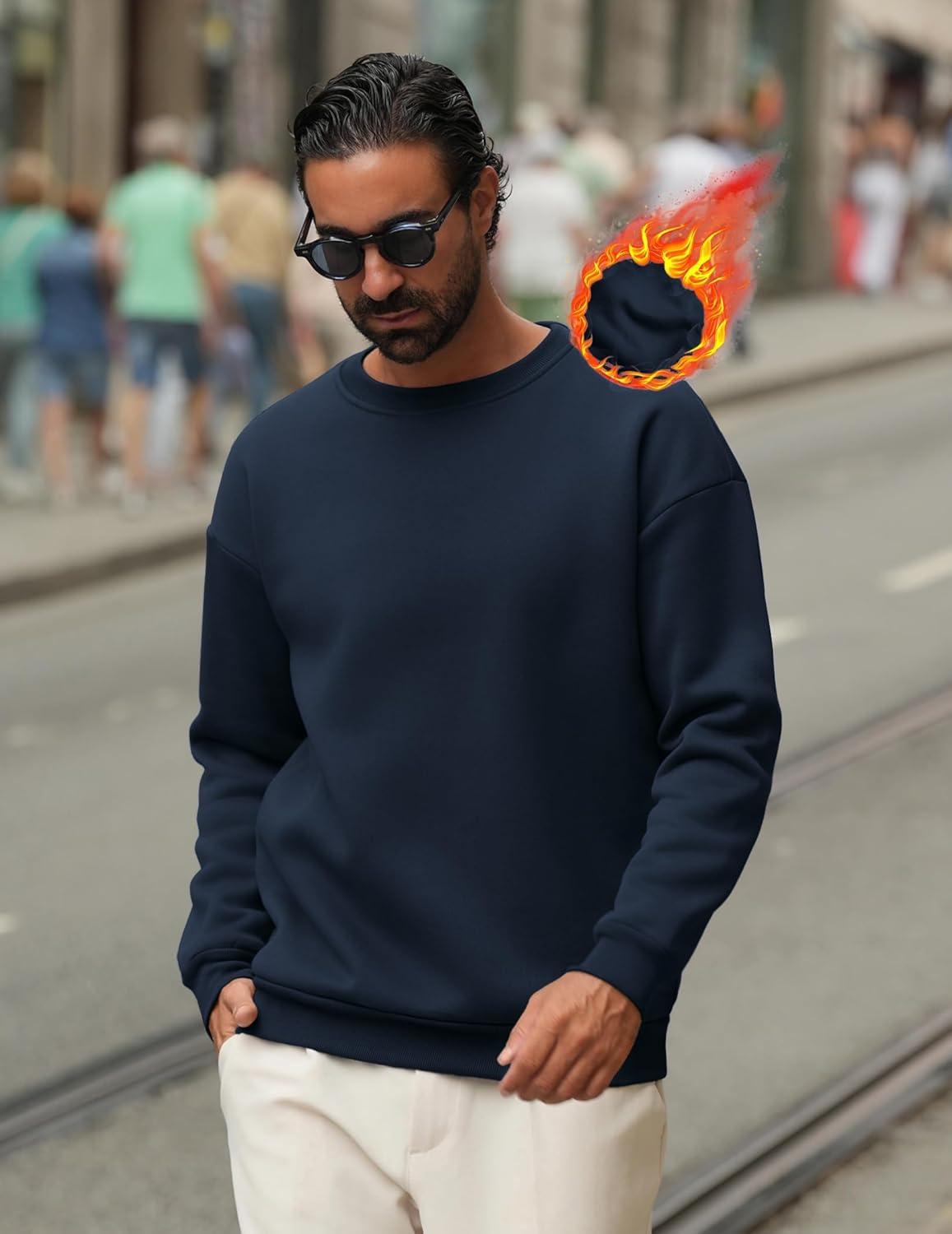 COOFANDY Men’s Crewneck Sweatshirts Long Sleeves Fleece Sweatshirts Thermal Casual Pullover Shirt(Navy Blue)