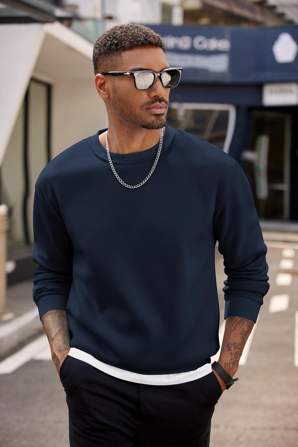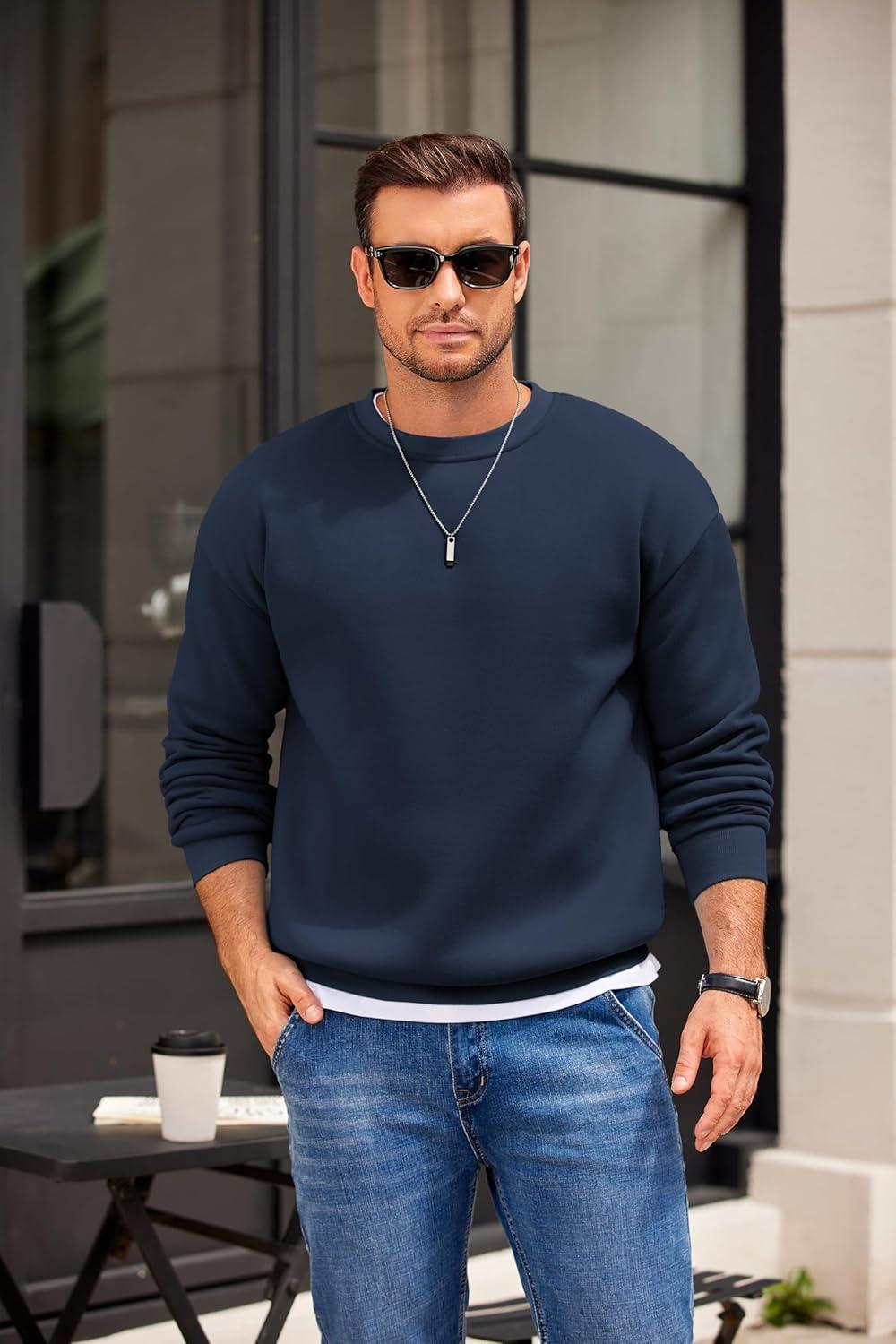 COOFANDY Men’s Crewneck Sweatshirts Long Sleeves Fleece Sweatshirts Thermal Casual Pullover Shirt(Navy)