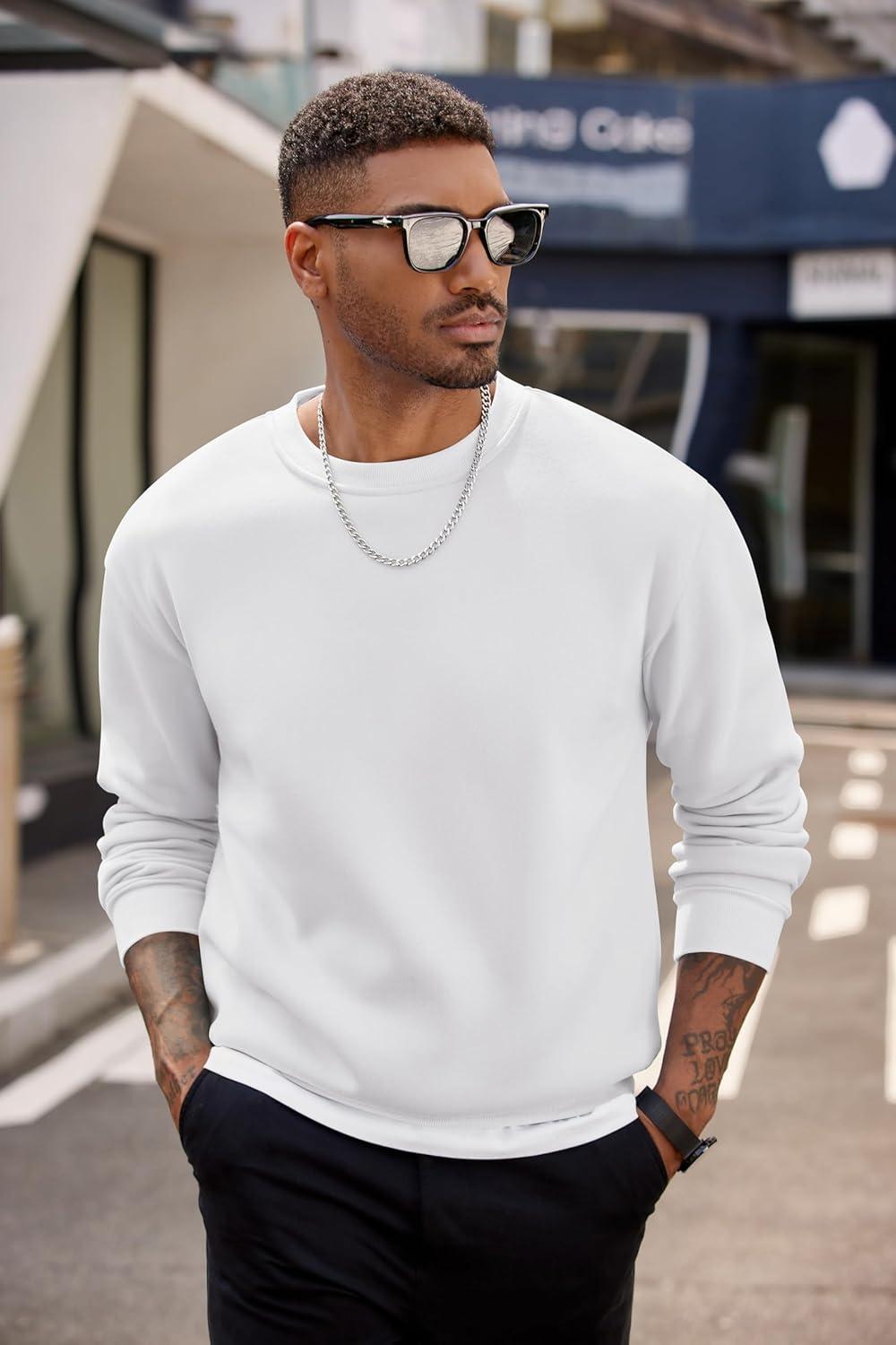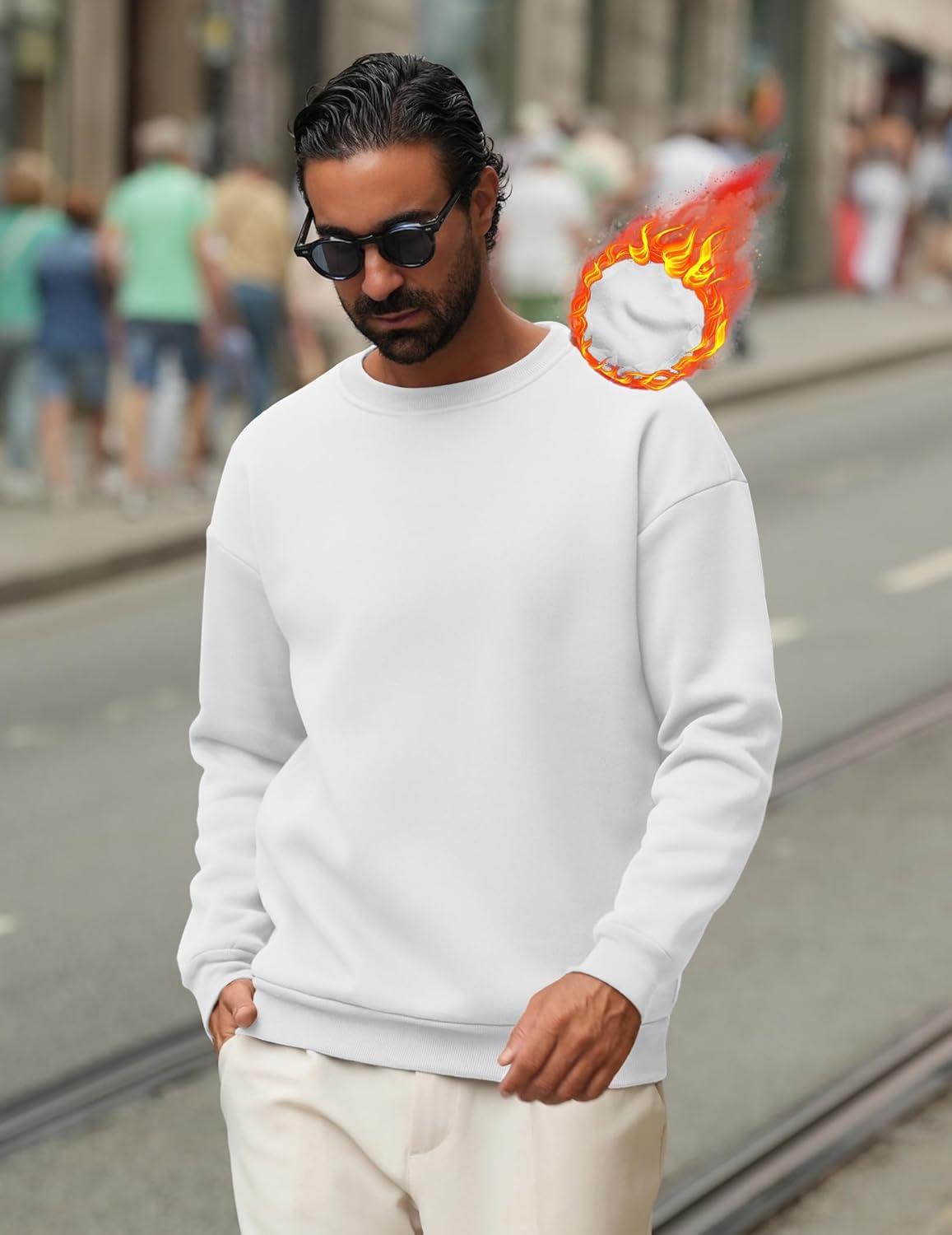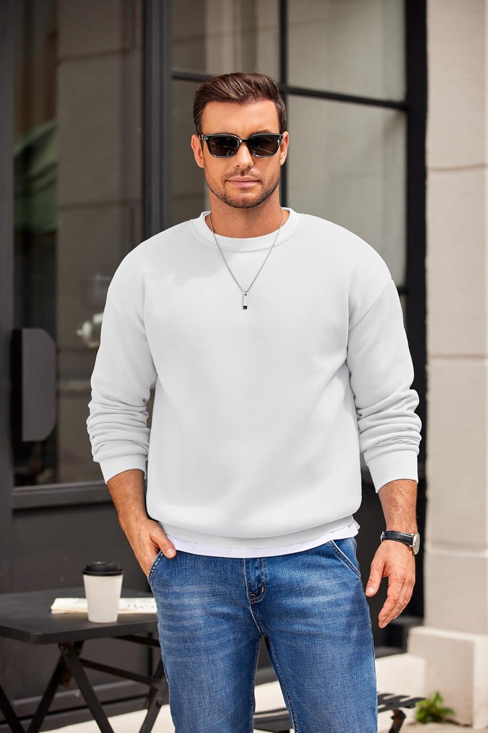 COOFANDY Men’s Crewneck Sweatshirts Long Sleeves Fleece Sweatshirts Thermal Casual Pullover Shirt(White)