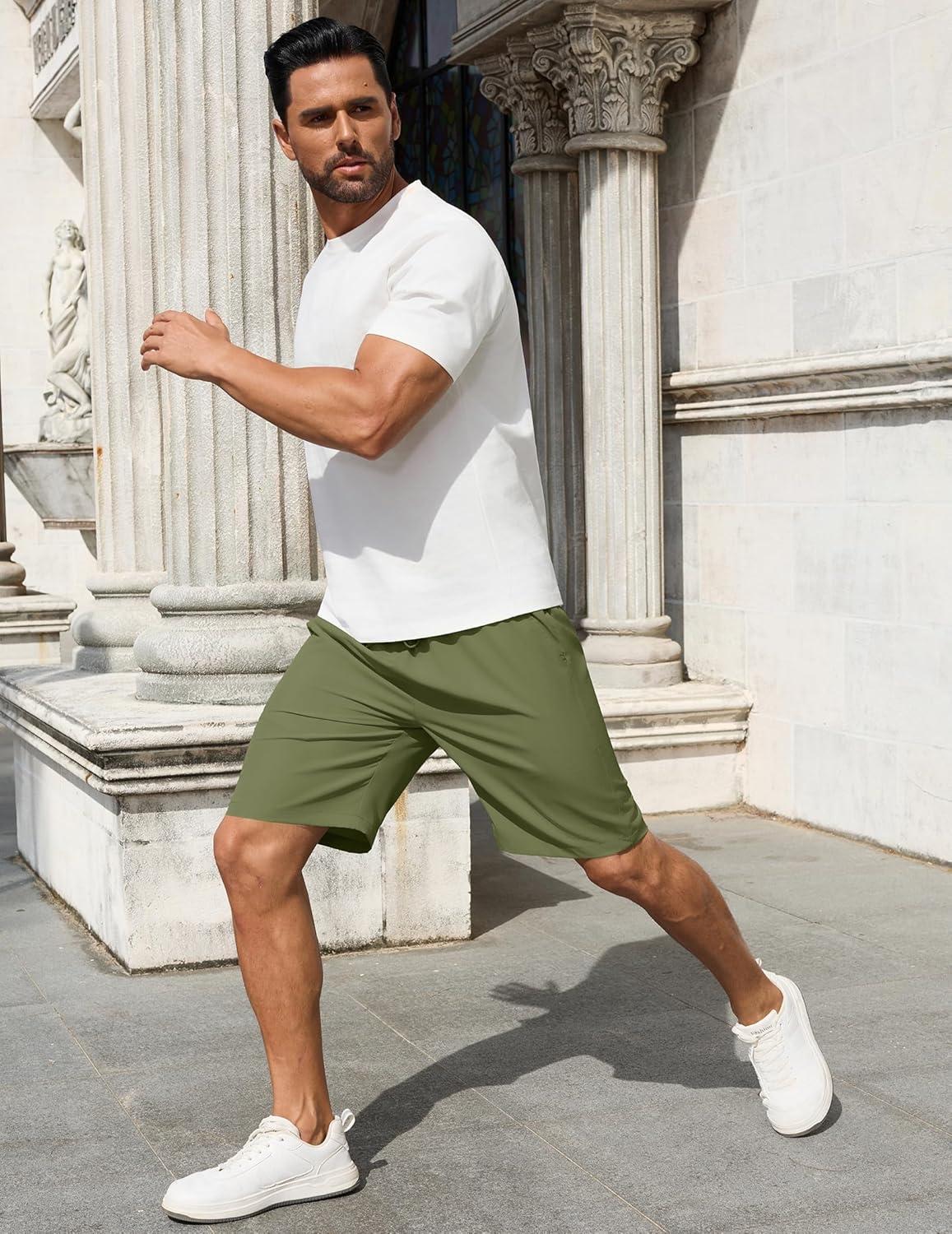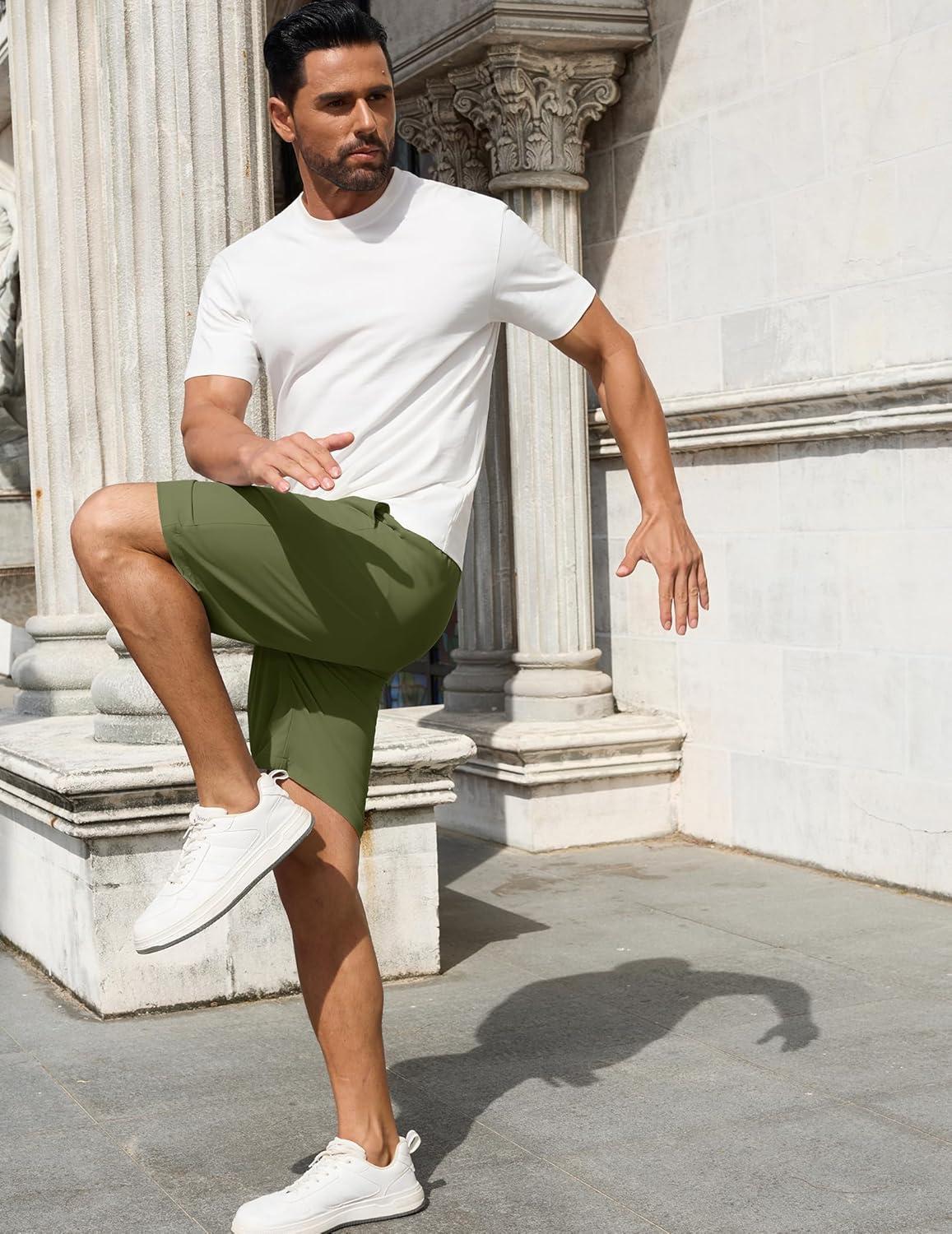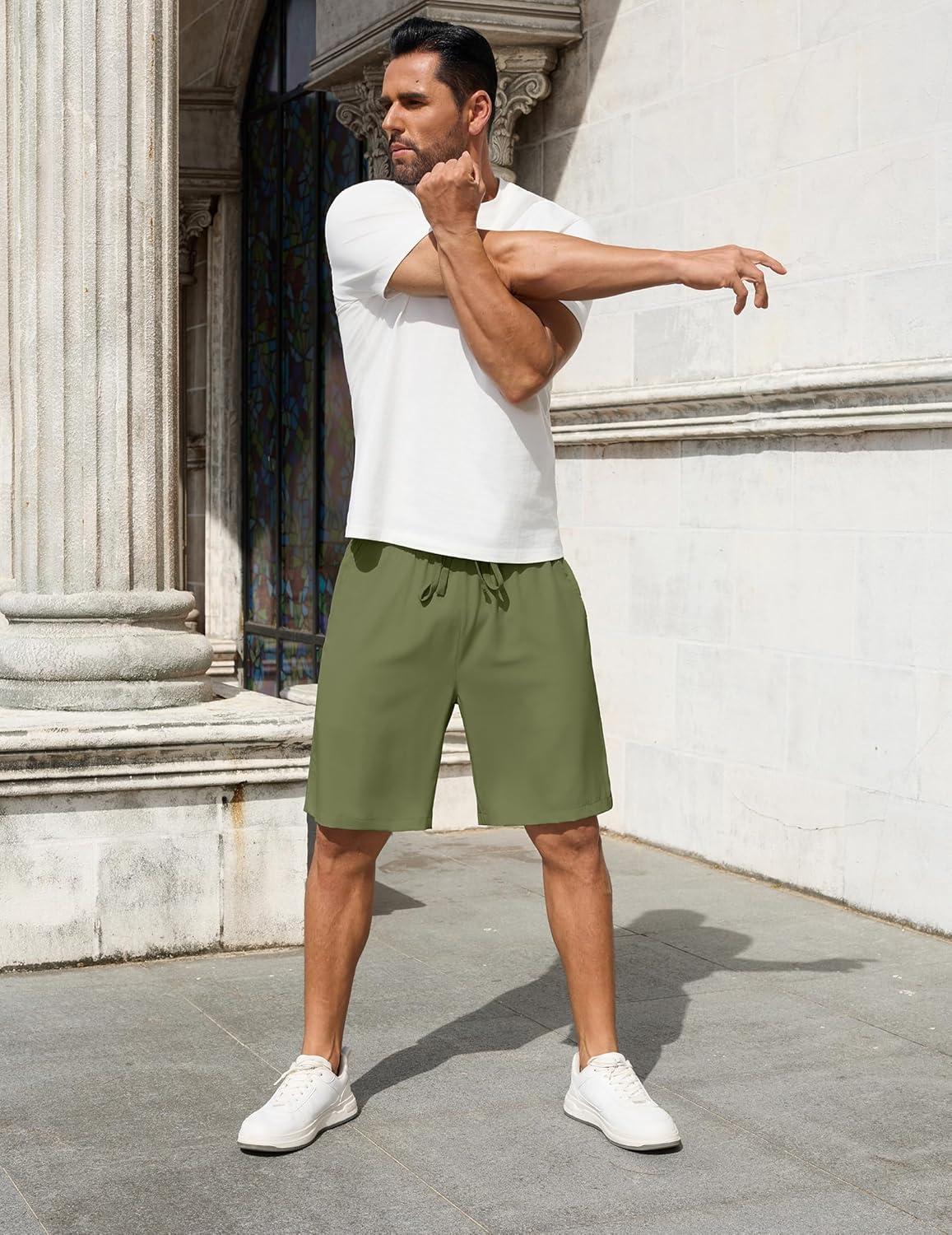 COOFANDY Men Casual Shorts Elastic Waist Drawstring Shorts Stretch Summer Beach Shorts with Pockets(Armygreen)