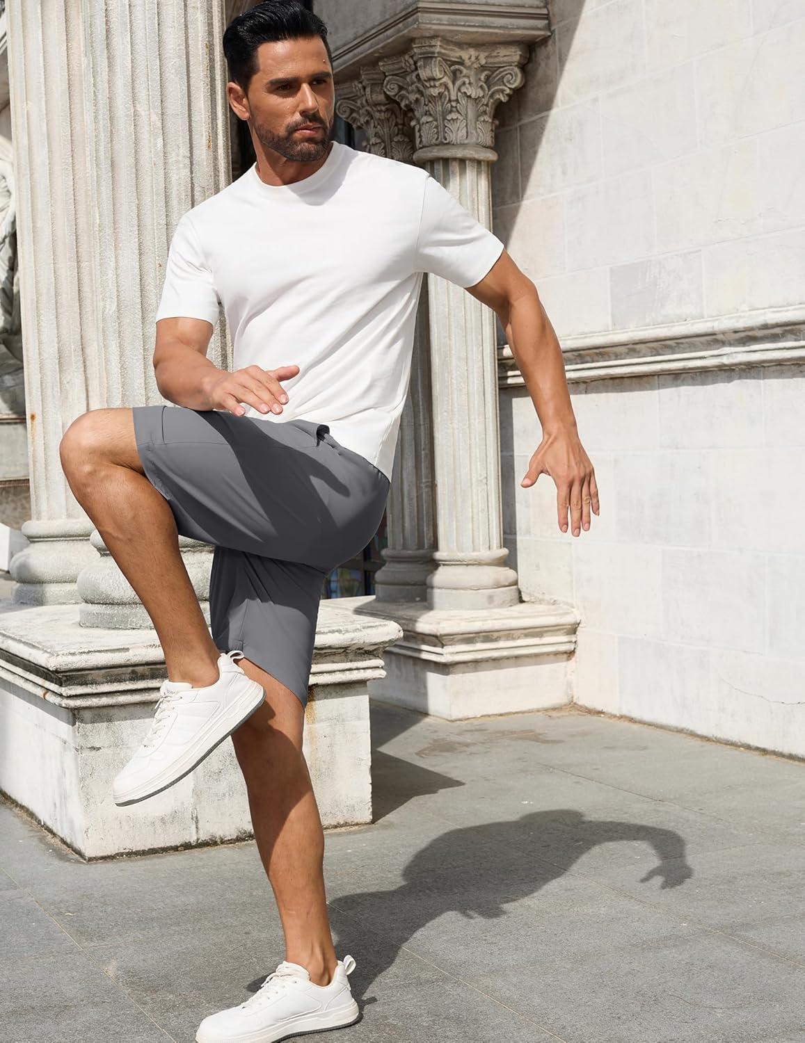 COOFANDY Men Casual Shorts Elastic Waist Drawstring Shorts Stretch Summer Beach Shorts with Pockets(Light Grey)